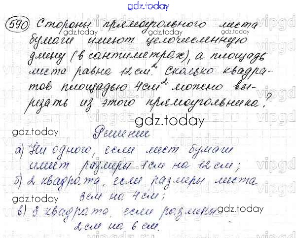 Ответы к §21. Площадь. Площадь прямоугольника Решение к главе 3. Умножение и деление натуральных чисел 590 Учебнику по Математике для 5 класса Мерзляк, Полонский Вентана-граф Алгоритм успеха 2016