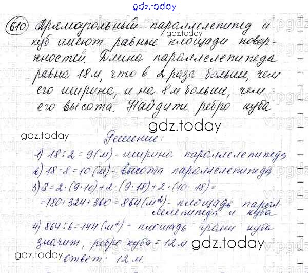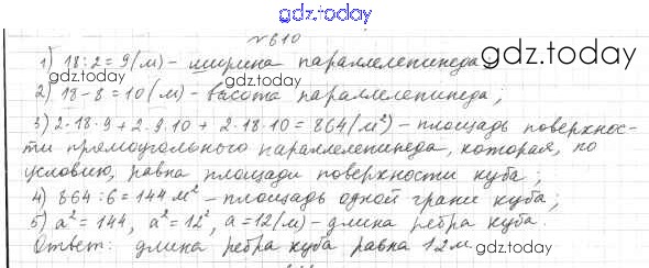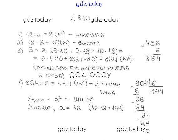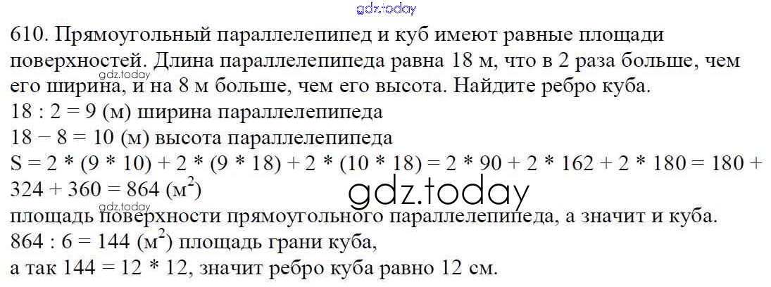 Ответы к §22. Прямоугольный параллелепипед. Пирамида Решение к главе 3. Умножение и деление натуральных чисел 610 Учебнику по Математике для 5 класса Мерзляк, Полонский Вентана-граф Алгоритм успеха 2016