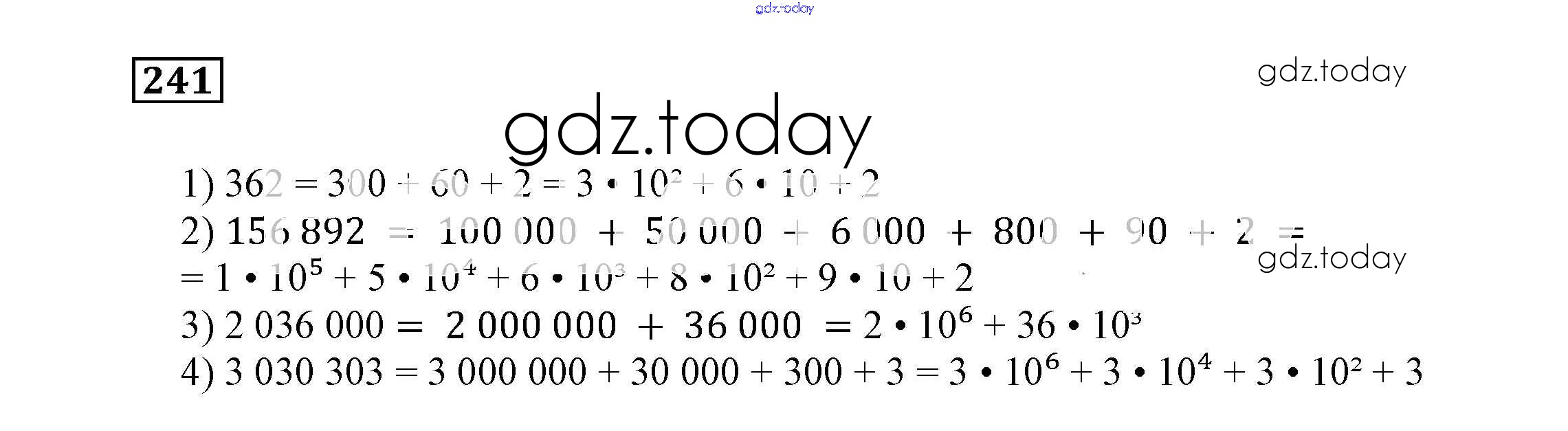 На страницах сайта gdz.today вы найдете учебный и вспомогательный материал, направленный на улучшения знаний школьной программы. ГДЗ - онлайн мир знаний Решение к упражнениям 241 Учебнику по Математике для 5 класса Муравин, Муравина Дрофа 2016