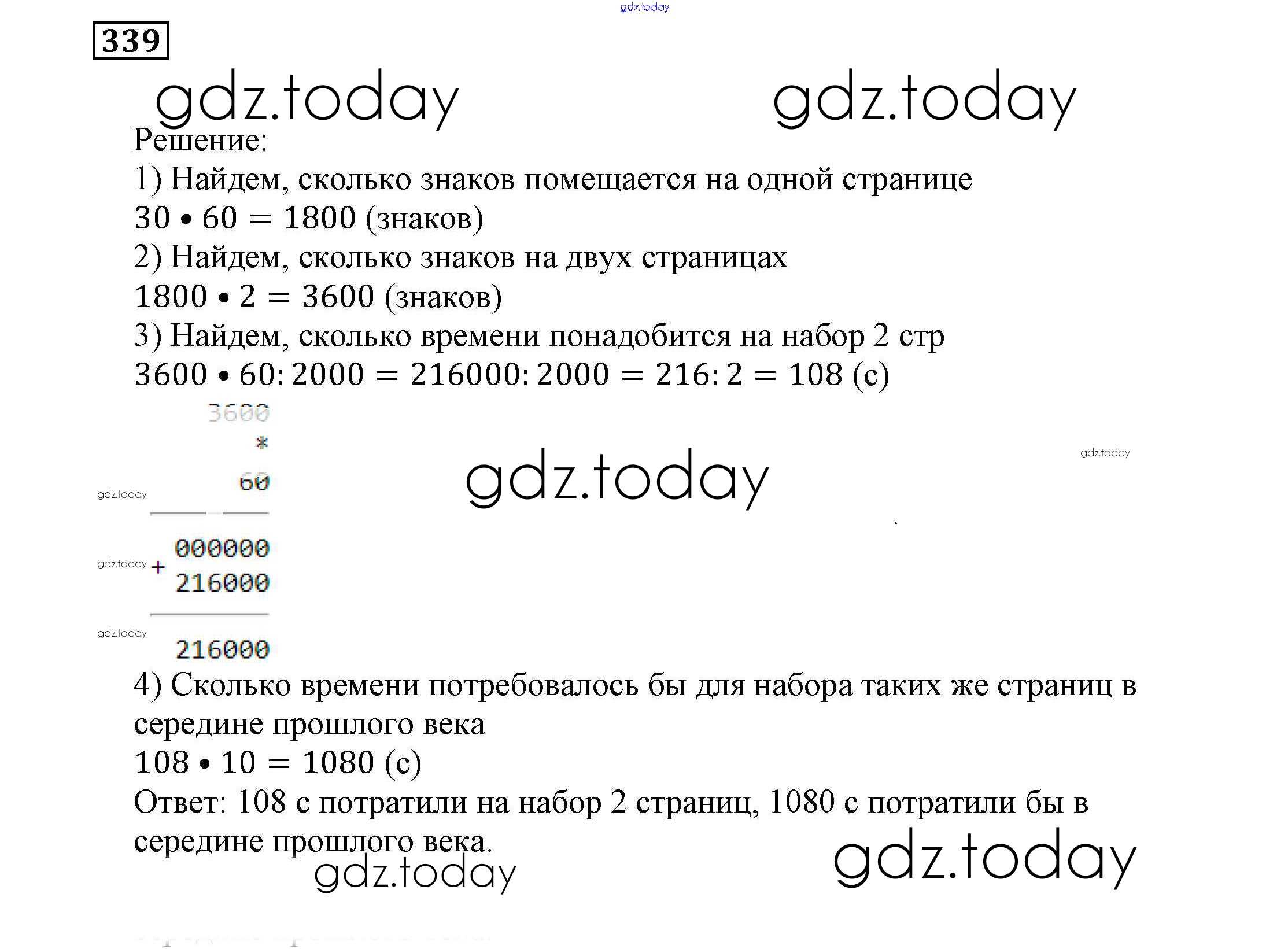 На страницах сайта gdz.today вы найдете учебный и вспомогательный материал, направленный на улучшения знаний школьной программы. ГДЗ - онлайн мир знаний Решение к упражнениям 339 Учебнику по Математике для 5 класса Муравин, Муравина Дрофа 2016