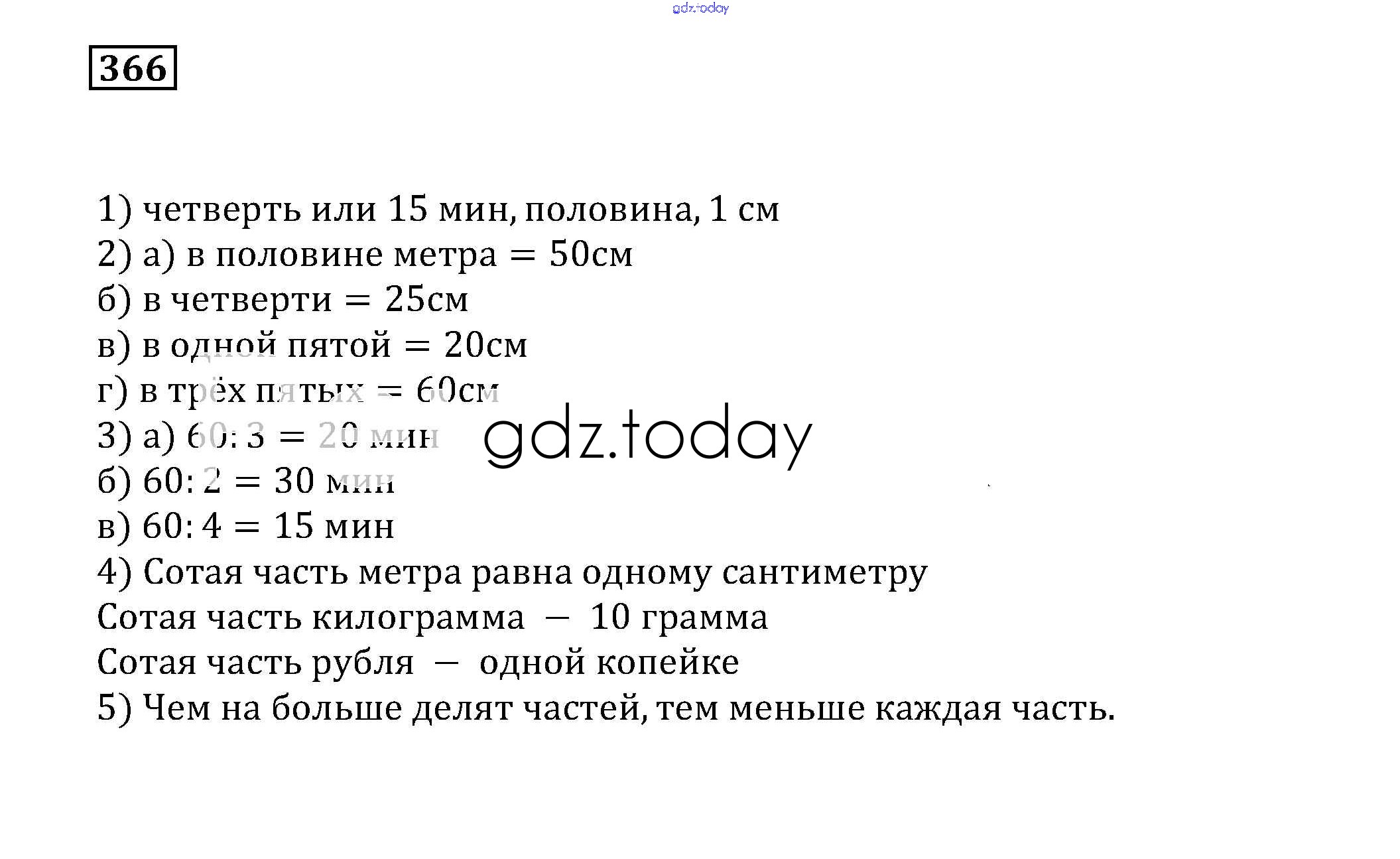 На страницах сайта gdz.today вы найдете учебный и вспомогательный материал, направленный на улучшения знаний школьной программы. ГДЗ - онлайн мир знаний Решение к упражнениям 366 Учебнику по Математике для 5 класса Муравин, Муравина Дрофа 2016