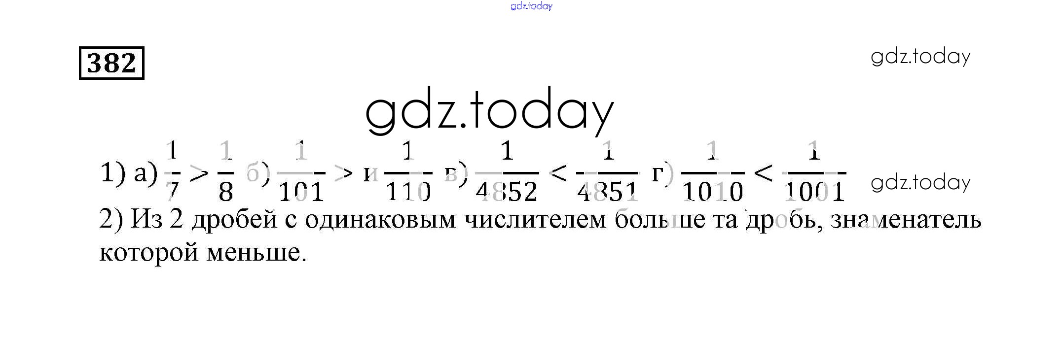 На страницах сайта gdz.today вы найдете учебный и вспомогательный материал, направленный на улучшения знаний школьной программы. ГДЗ - онлайн мир знаний Решение к упражнениям 382 Учебнику по Математике для 5 класса Муравин, Муравина Дрофа 2016