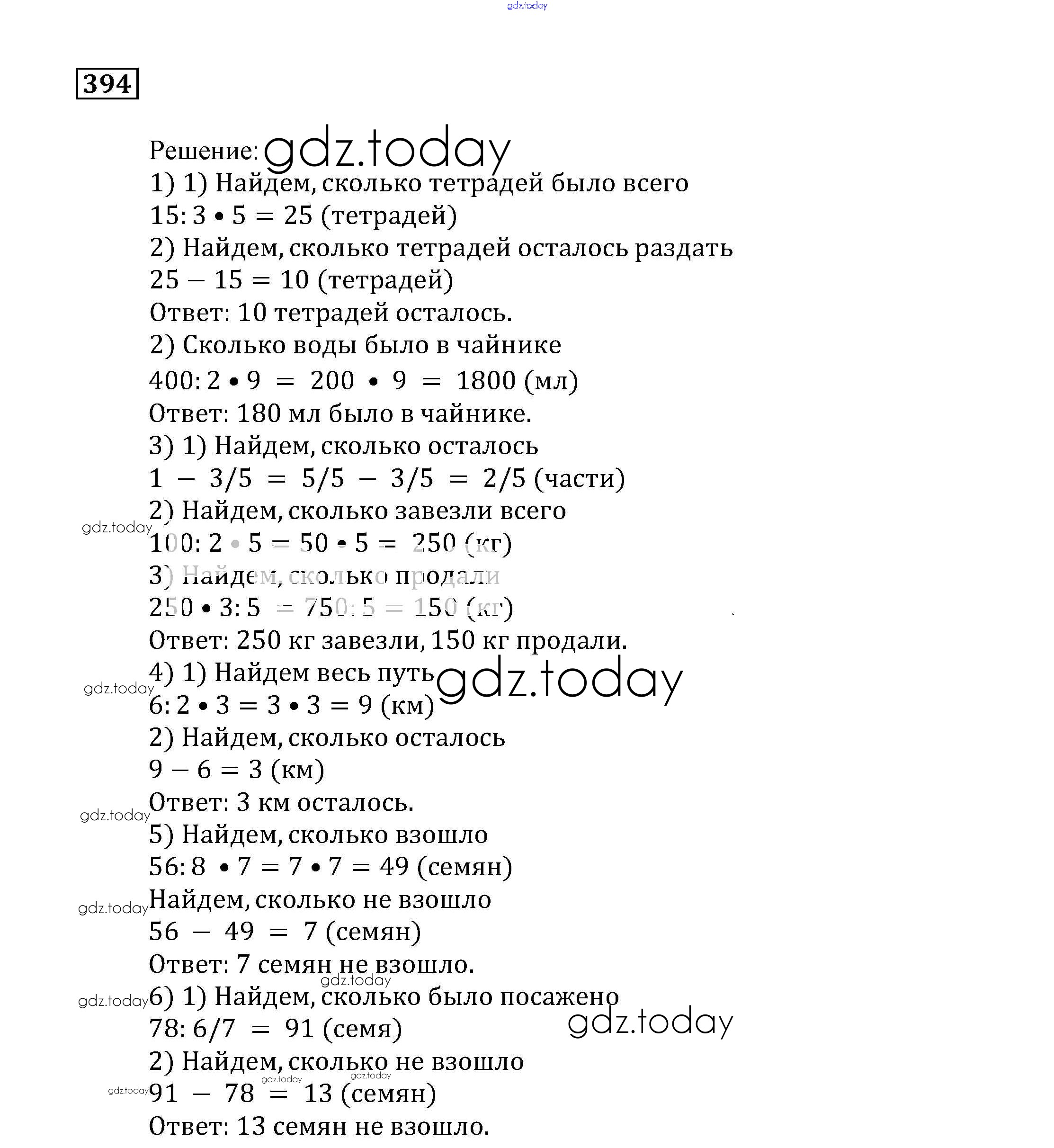 На страницах сайта gdz.today вы найдете учебный и вспомогательный материал, направленный на улучшения знаний школьной программы. ГДЗ - онлайн мир знаний Решение к упражнениям 394 Учебнику по Математике для 5 класса Муравин, Муравина Дрофа 2016