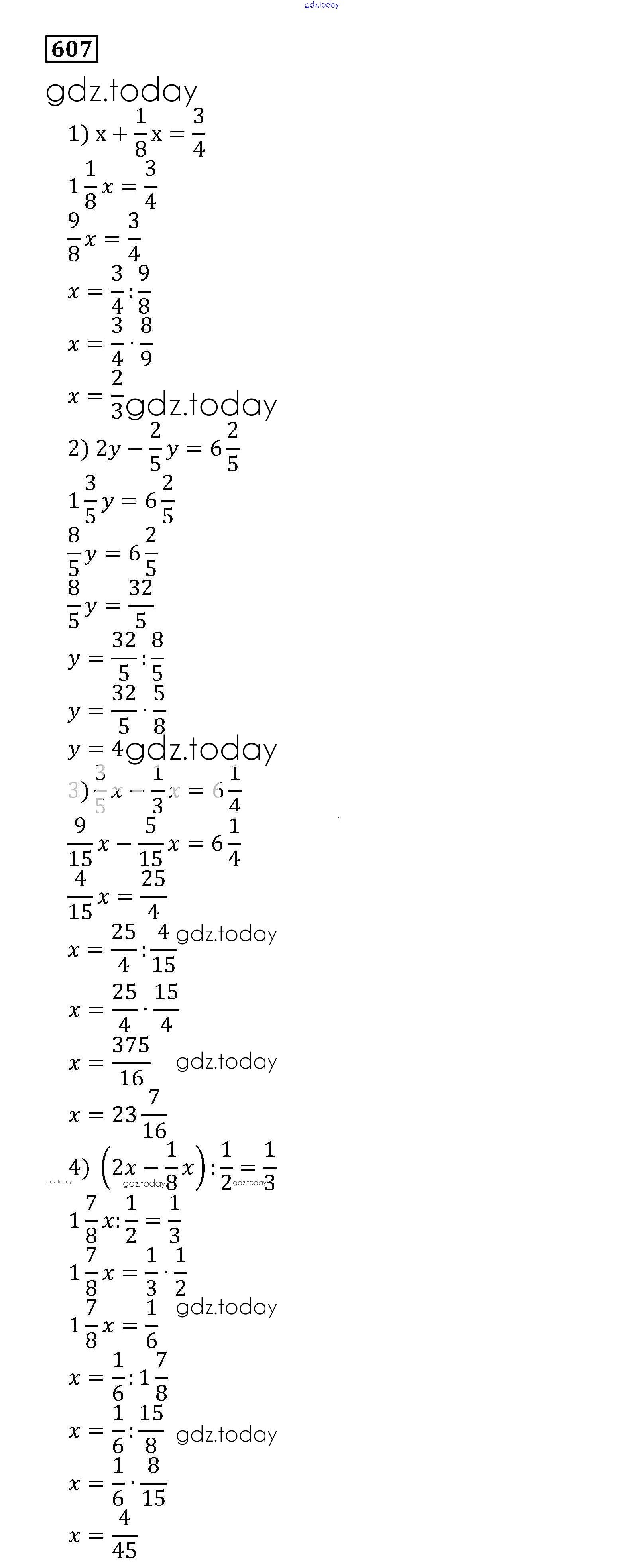 Ответы к Решение к упражнениям 607 Учебнику по Математике для 5 класса Муравин, Муравина Дрофа 2016
