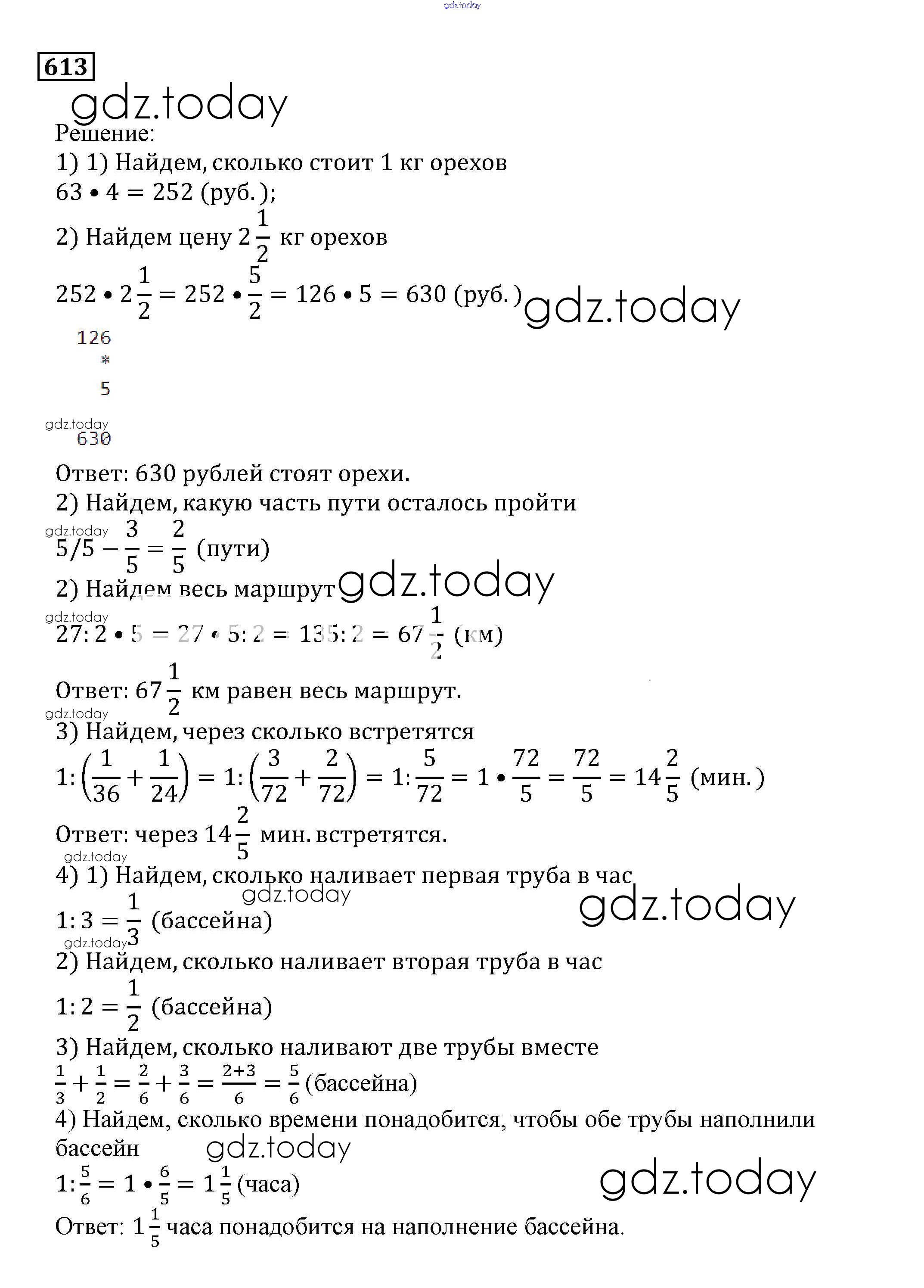 Ответы к Решение к упражнениям 613 Учебнику по Математике для 5 класса Муравин, Муравина Дрофа 2016