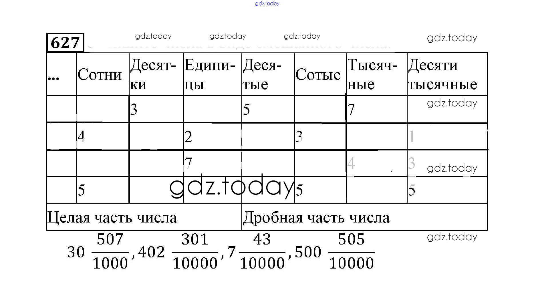 На страницах сайта gdz.today вы найдете учебный и вспомогательный материал, направленный на улучшения знаний школьной программы. ГДЗ - онлайн мир знаний Решение к упражнениям 627 Учебнику по Математике для 5 класса Муравин, Муравина Дрофа 2016