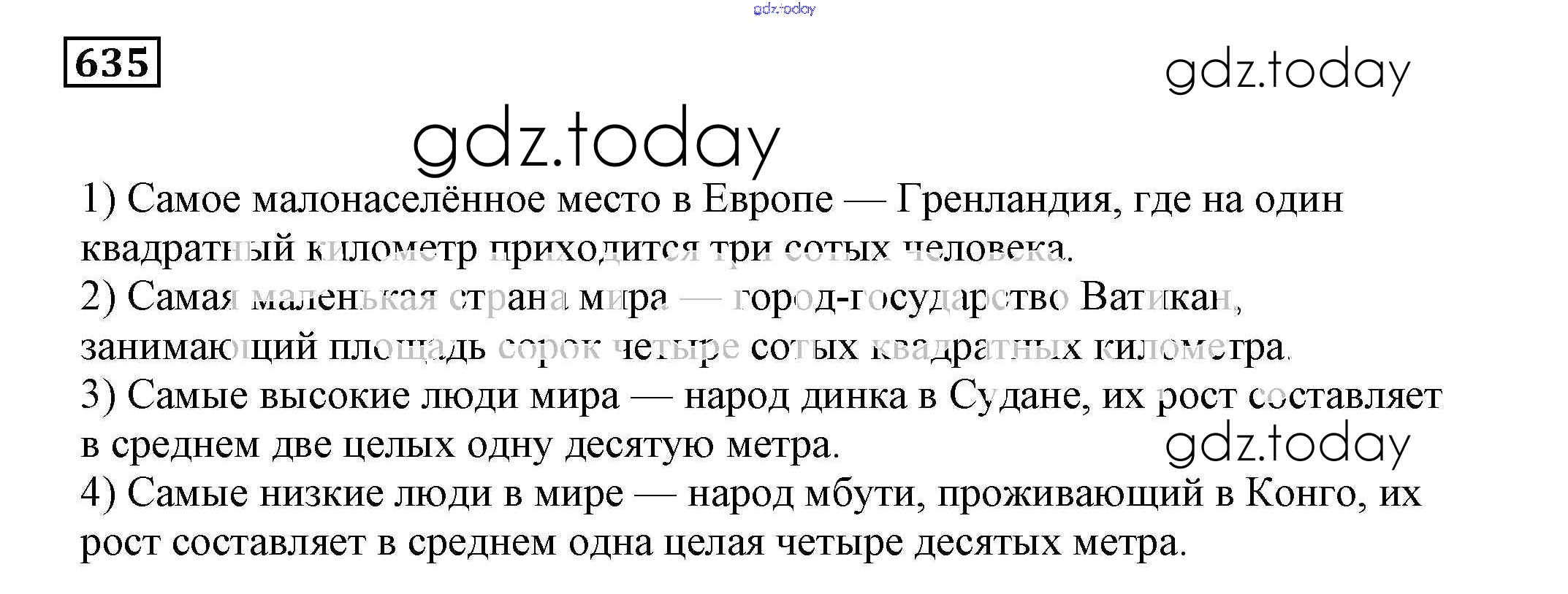 На страницах сайта gdz.today вы найдете учебный и вспомогательный материал, направленный на улучшения знаний школьной программы. ГДЗ - онлайн мир знаний Решение к упражнениям 635 Учебнику по Математике для 5 класса Муравин, Муравина Дрофа 2016