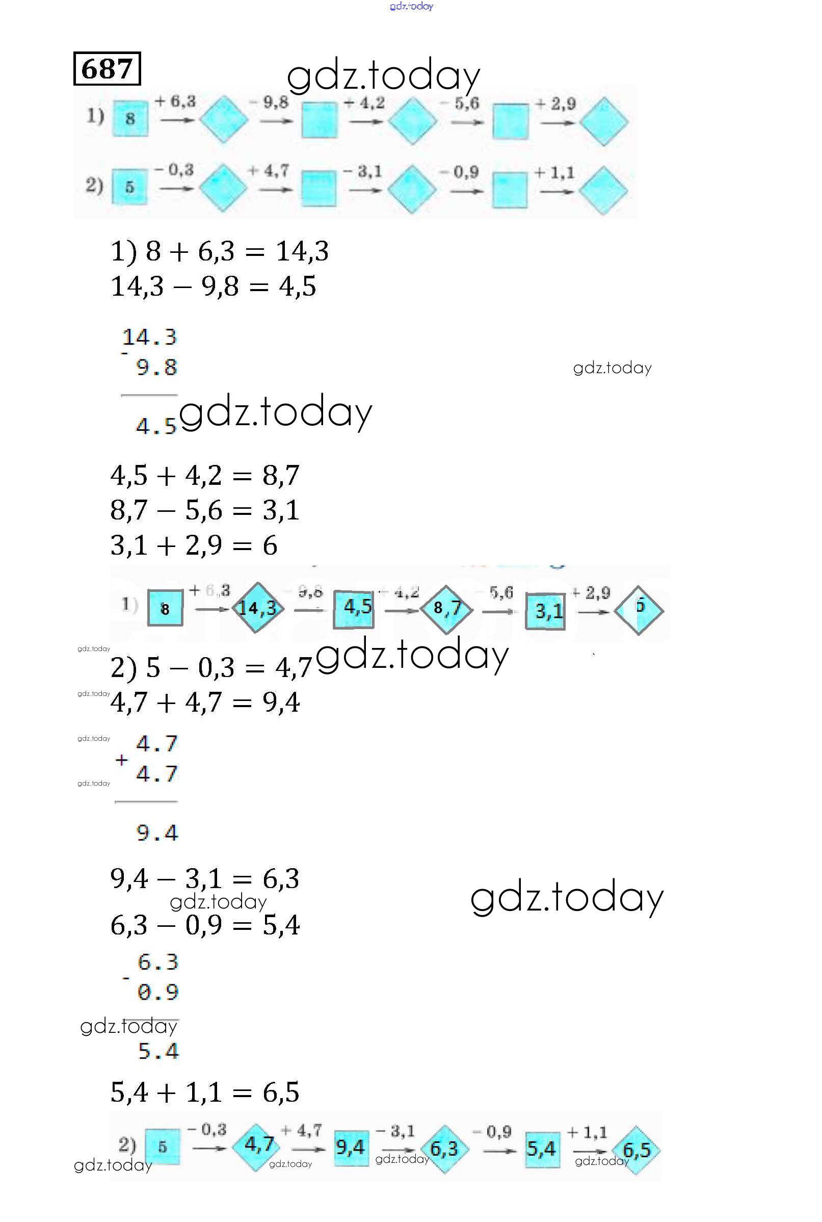 Ответы к Решение к упражнениям 687 Учебнику по Математике для 5 класса Муравин, Муравина Дрофа 2016