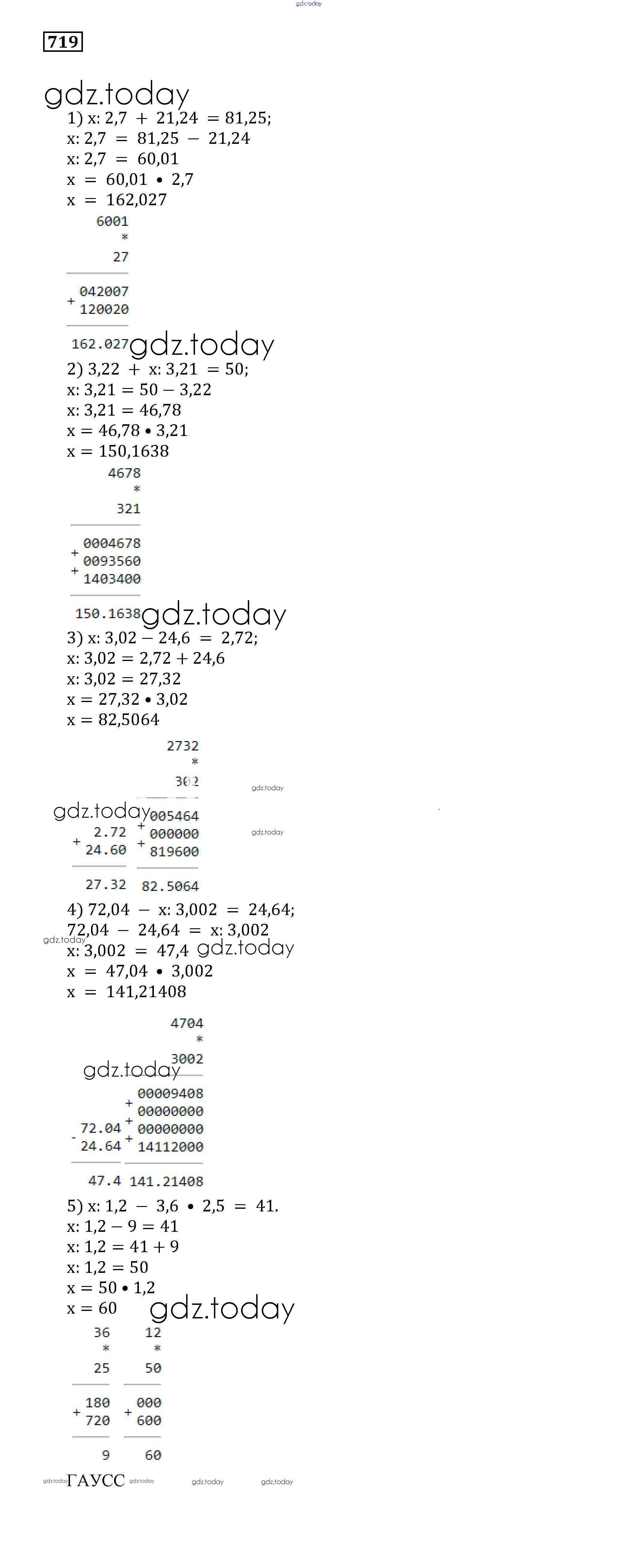 Ответы к Решение к упражнениям 719 Учебнику по Математике для 5 класса Муравин, Муравина Дрофа 2016