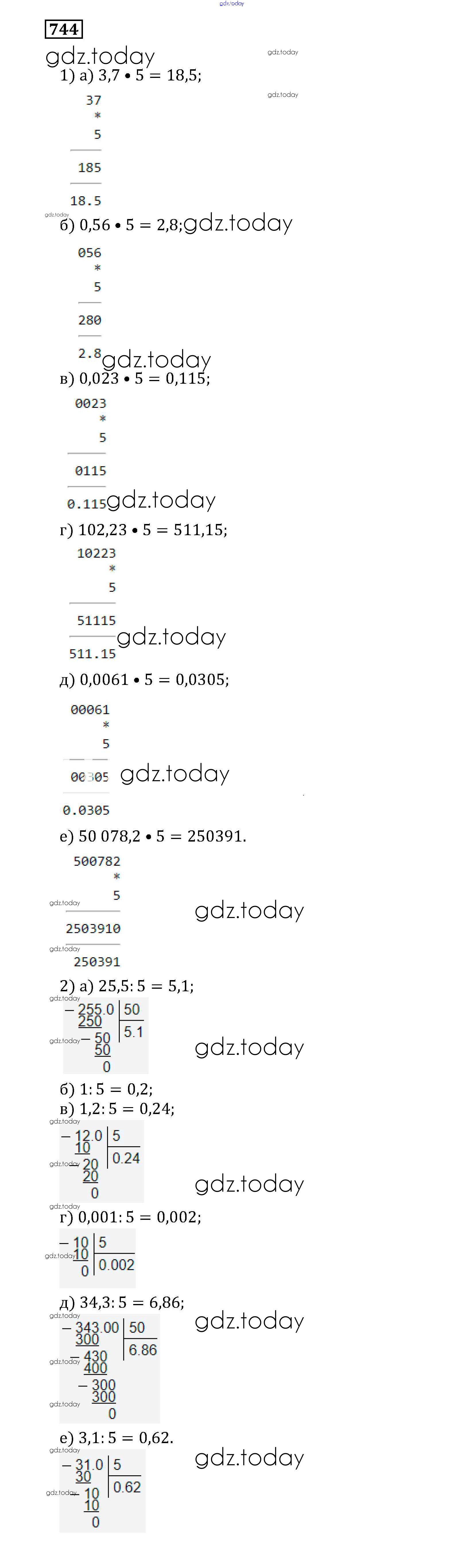 Ответы к Решение к упражнениям 744 Учебнику по Математике для 5 класса Муравин, Муравина Дрофа 2016