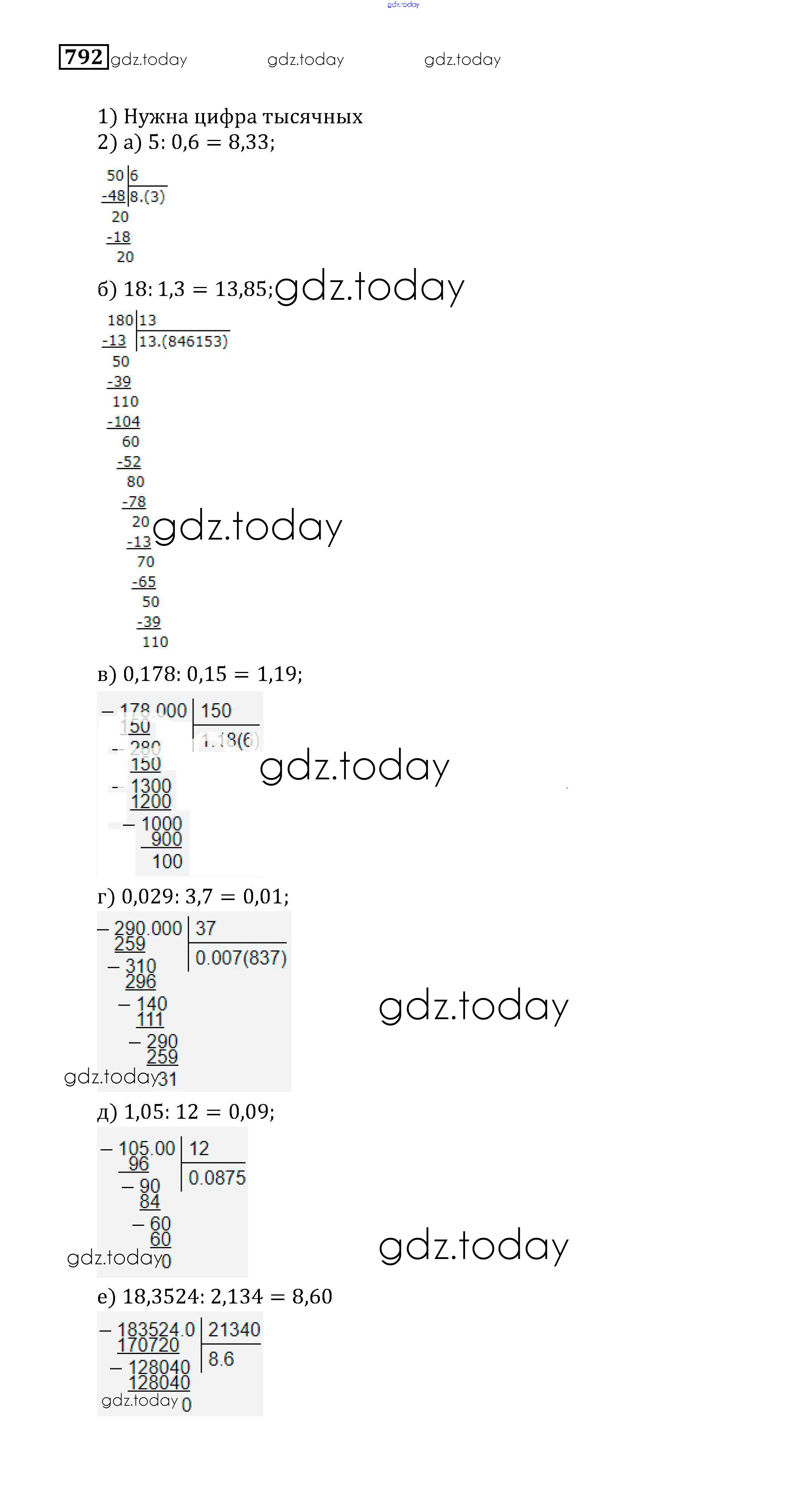 Ответы к Решение к упражнениям 792 Учебнику по Математике для 5 класса Муравин, Муравина Дрофа 2016