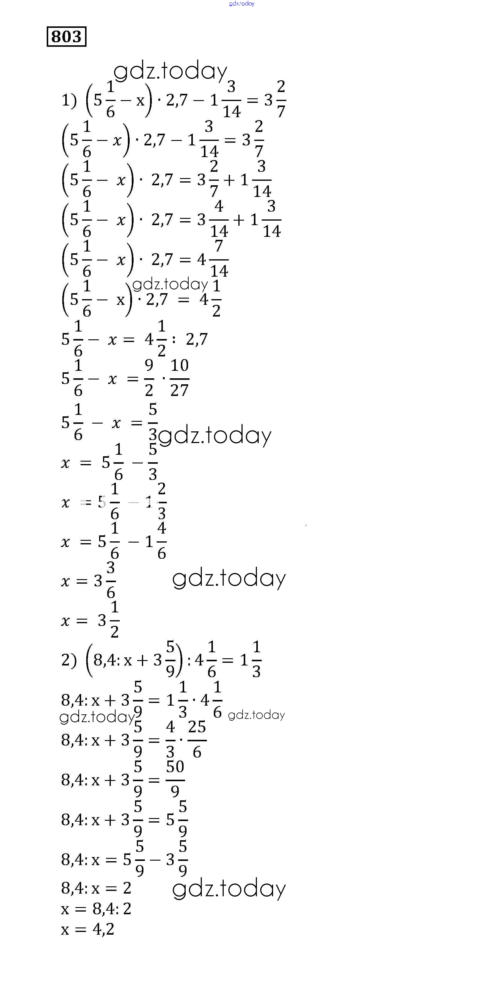 Ответы к Решение к упражнениям 803 Учебнику по Математике для 5 класса Муравин, Муравина Дрофа 2016