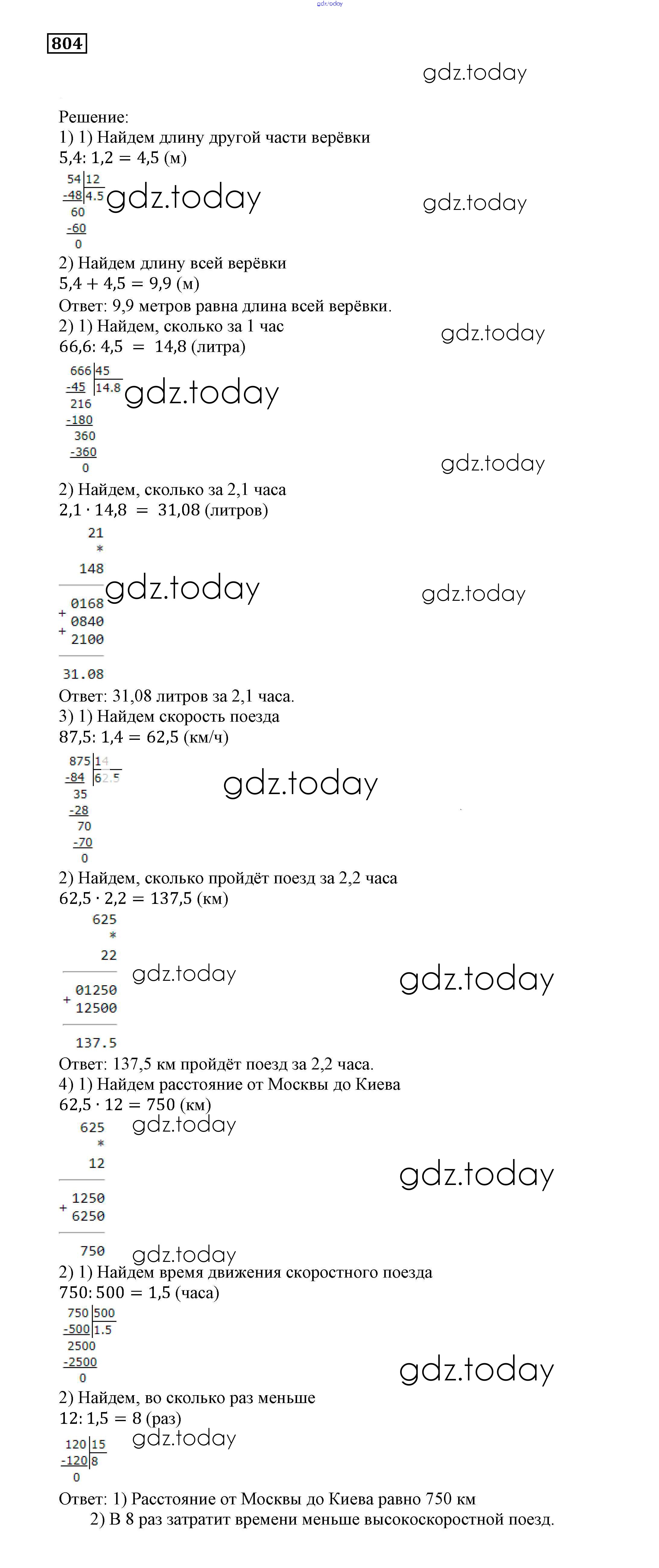 Ответы к Решение к упражнениям 804 Учебнику по Математике для 5 класса Муравин, Муравина Дрофа 2016