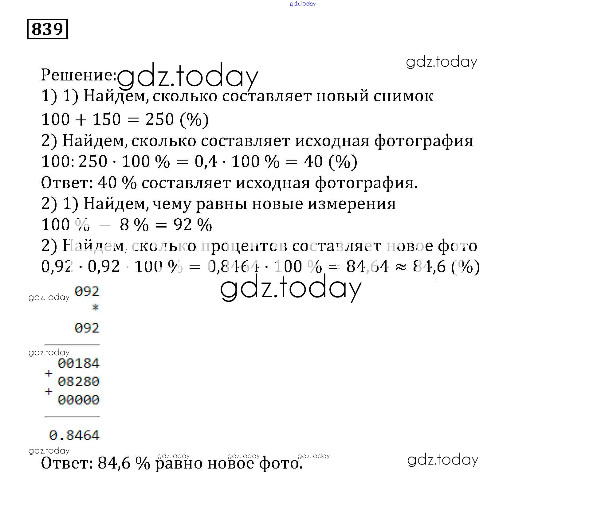 Ответы к Решение к упражнениям 839 Учебнику по Математике для 5 класса Муравин, Муравина Дрофа 2016