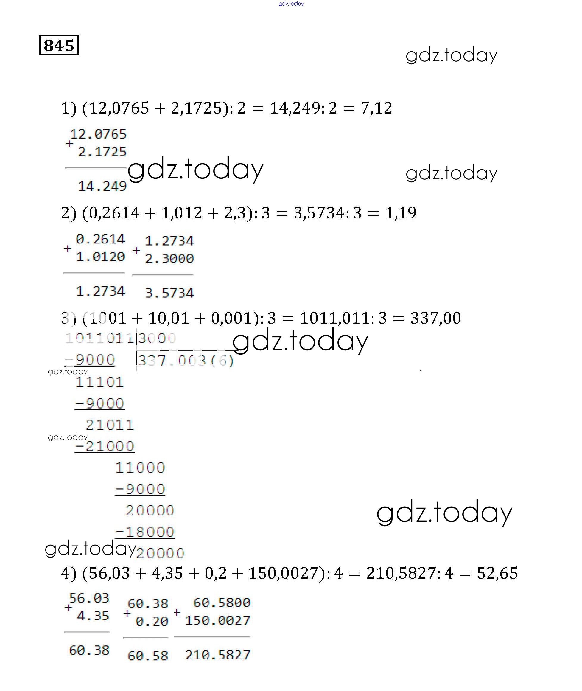 Ответы к Решение к упражнениям 845 Учебнику по Математике для 5 класса Муравин, Муравина Дрофа 2016