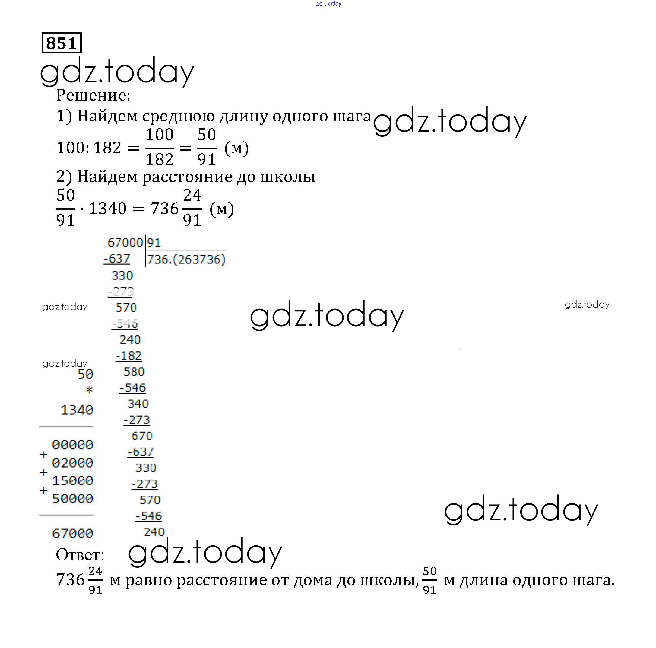 Ответы к Решение к упражнениям 851 Учебнику по Математике для 5 класса Муравин, Муравина Дрофа 2016