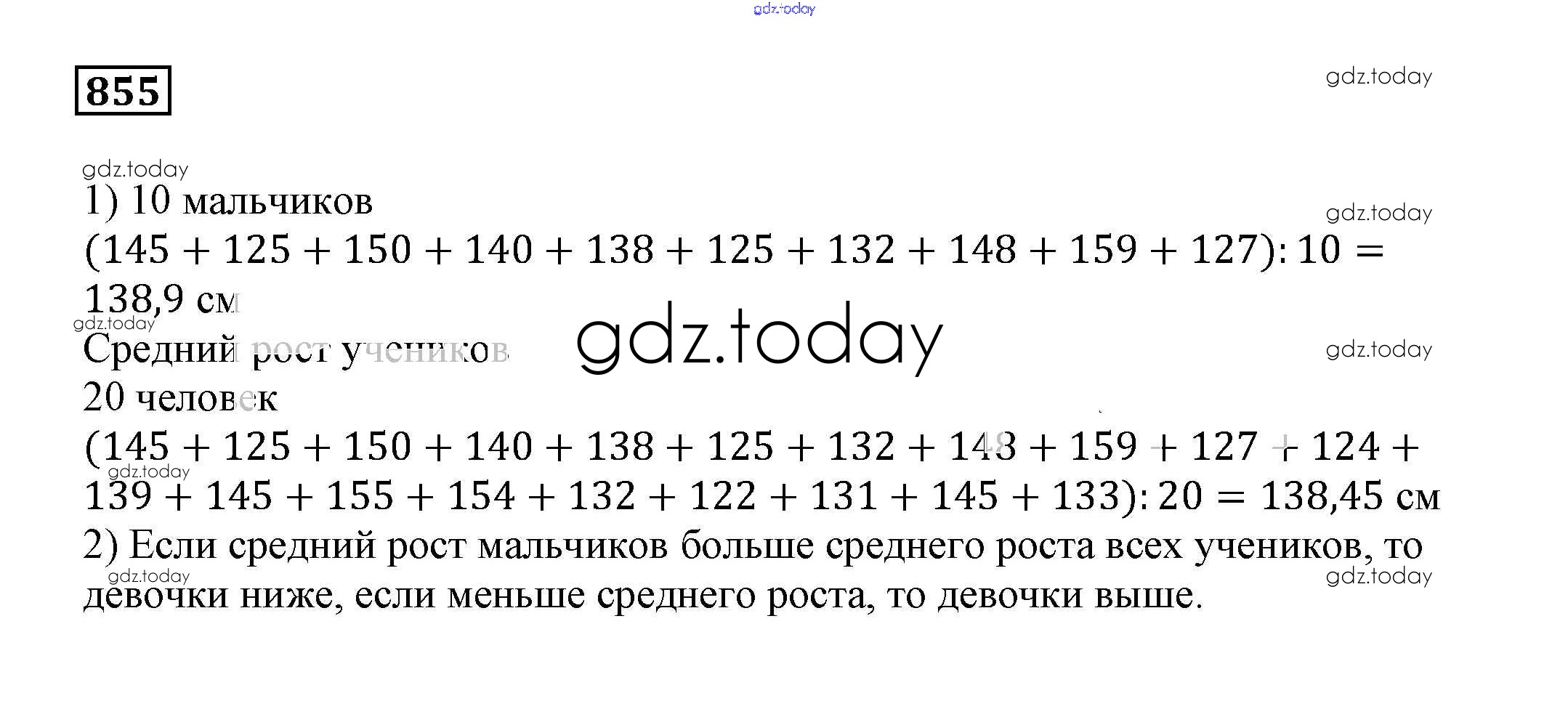 Ответы к Решение к упражнениям 855 Учебнику по Математике для 5 класса Муравин, Муравина Дрофа 2016