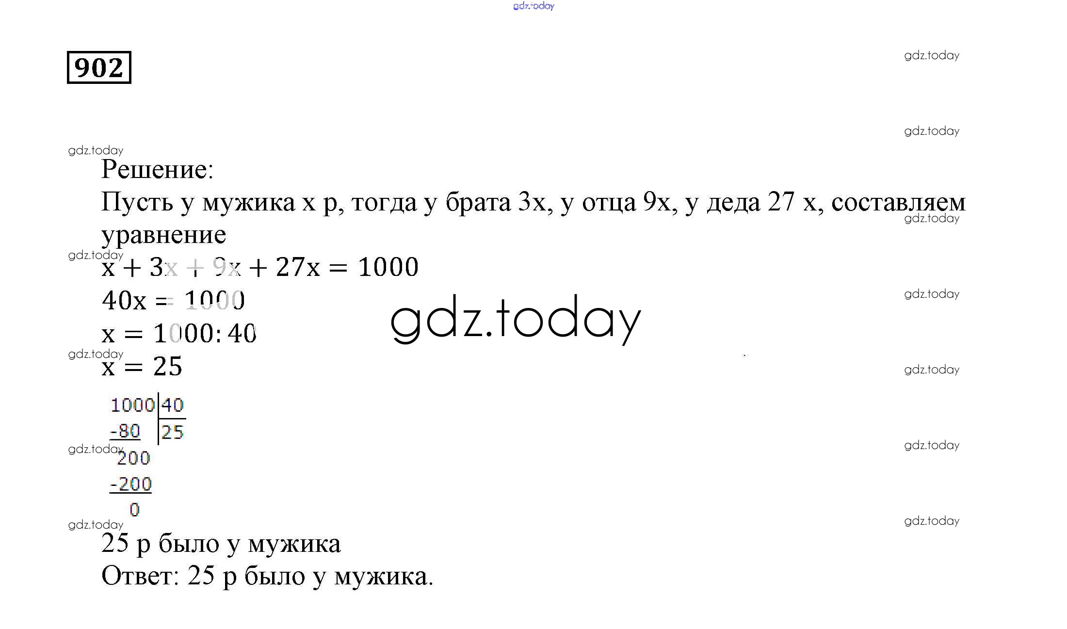 Ответы к Решение к упражнениям 902 Учебнику по Математике для 5 класса Муравин, Муравина Дрофа 2016