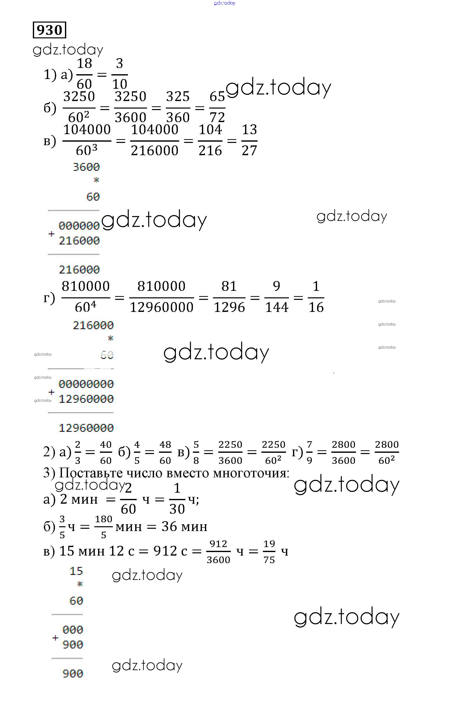 Ответы к Решение к упражнениям 930 Учебнику по Математике для 5 класса Муравин, Муравина Дрофа 2016