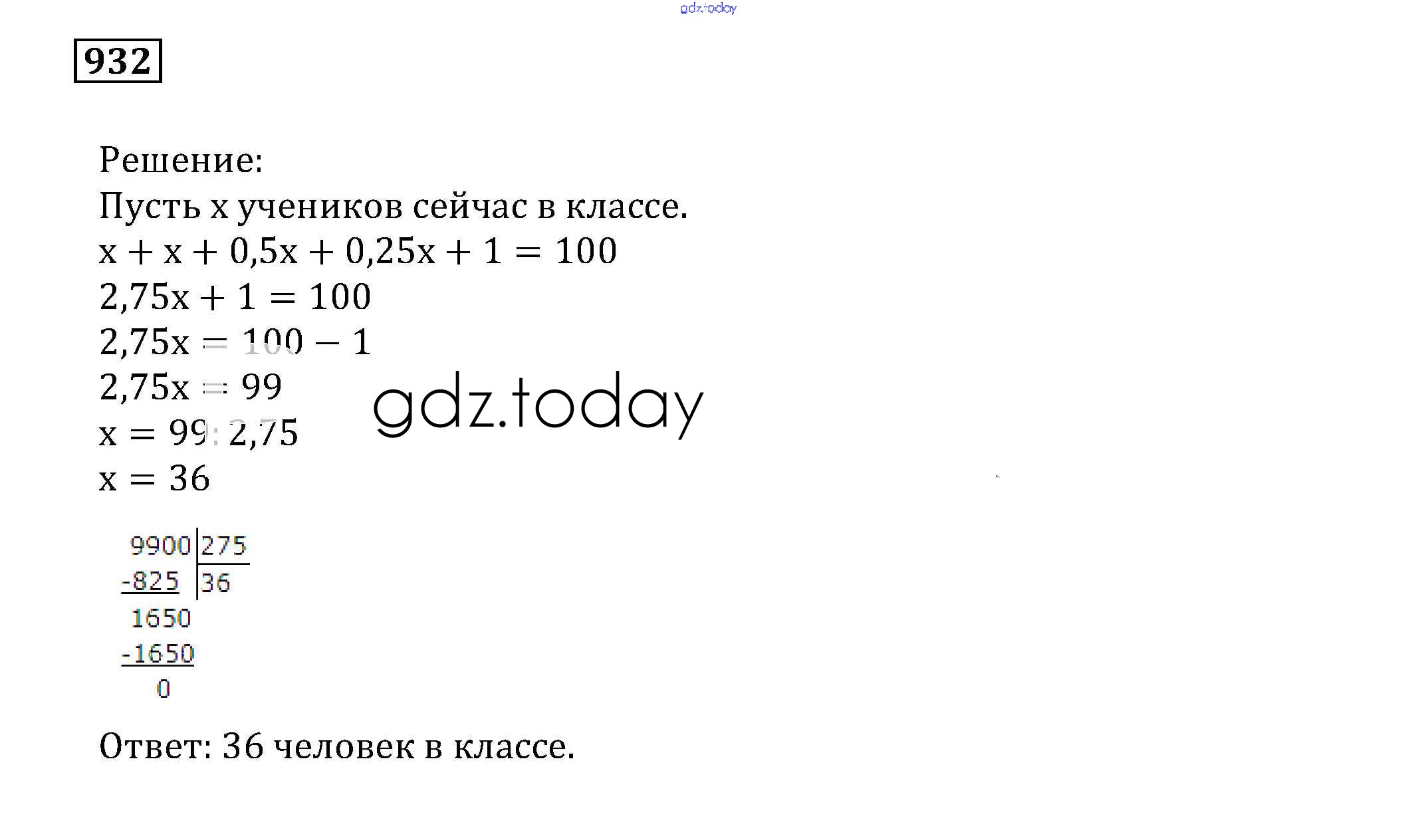 Ответы к Решение к упражнениям 932 Учебнику по Математике для 5 класса Муравин, Муравина Дрофа 2016