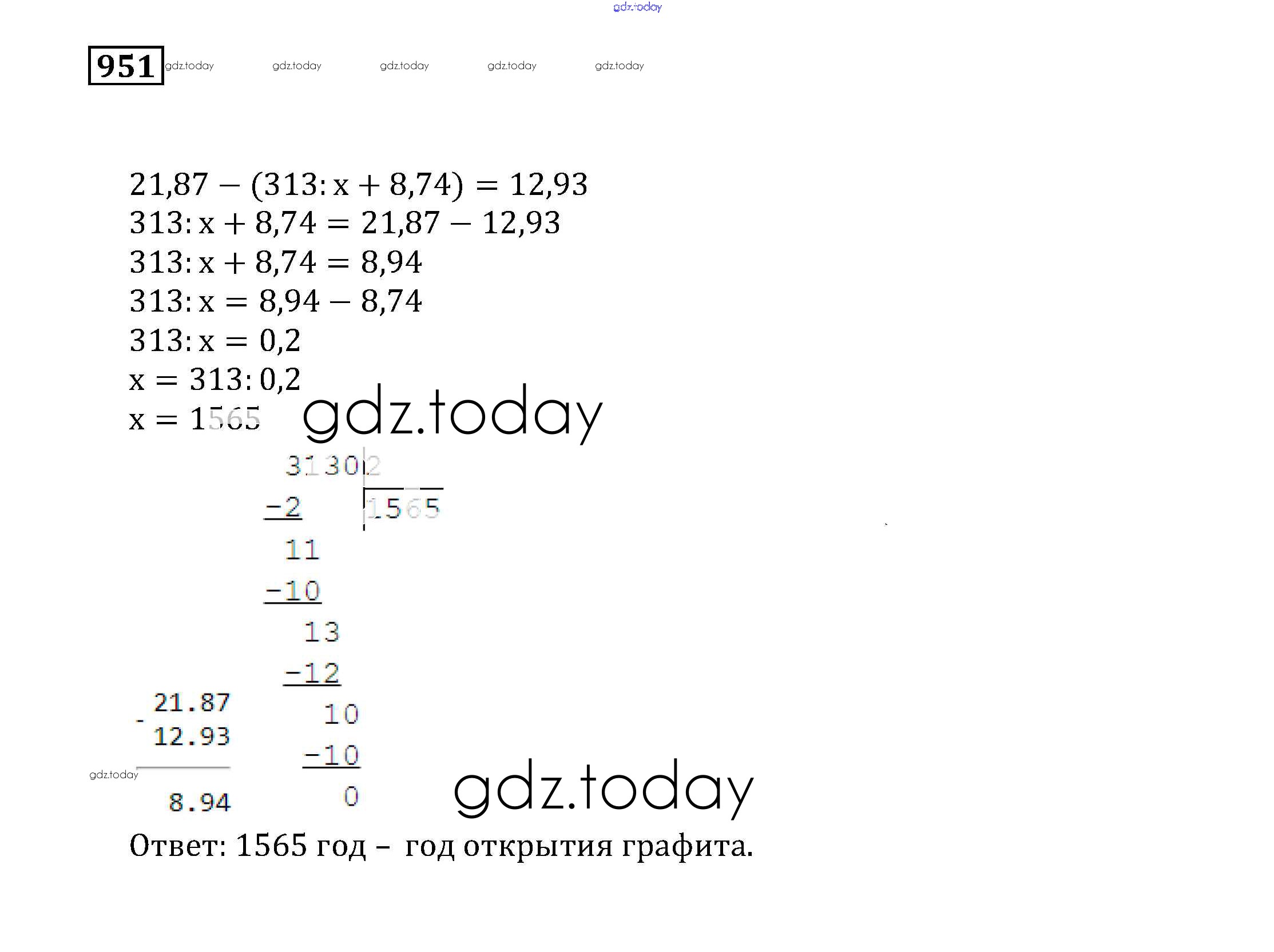 Ответы к Решение к упражнениям 951 Учебнику по Математике для 5 класса Муравин, Муравина Дрофа 2016