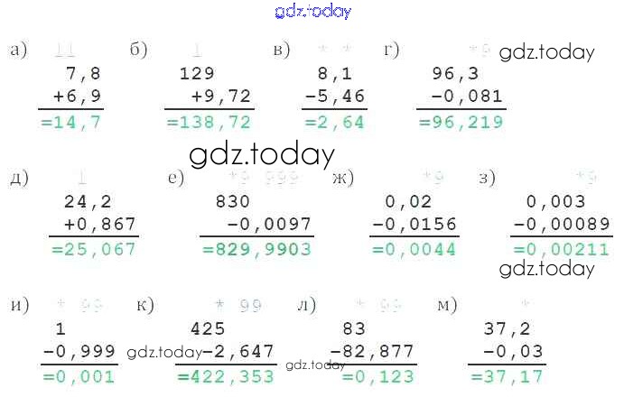 На страницах сайта gdz.today вы найдете учебный и вспомогательный материал, направленный на улучшения знаний школьной программы. ГДЗ - онлайн мир знаний Решение к §6. Десятичные дроби. Сложение и вычитание десятичных дробей 369 Учебнику по Математике для 5 класса Виленкин, Жохов Мнемозина 2018