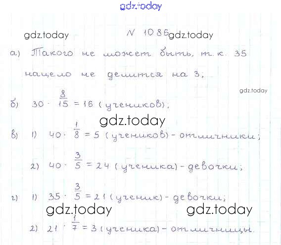 На страницах сайта gdz.today вы найдете учебный и вспомогательный материал, направленный на улучшения знаний школьной программы. ГДЗ - онлайн мир знаний Решение к упражнениям 1086 Учебнику по Математике для 5 класса Никольский, Потапов Просвещение, Просвещение МГУ - школе 2016, 2012