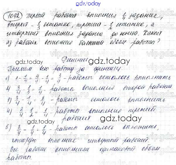 На страницах сайта gdz.today вы найдете учебный и вспомогательный материал, направленный на улучшения знаний школьной программы. ГДЗ - онлайн мир знаний Решение к упражнениям 1092 Учебнику по Математике для 5 класса Никольский, Потапов Просвещение, Просвещение МГУ - школе 2016, 2012