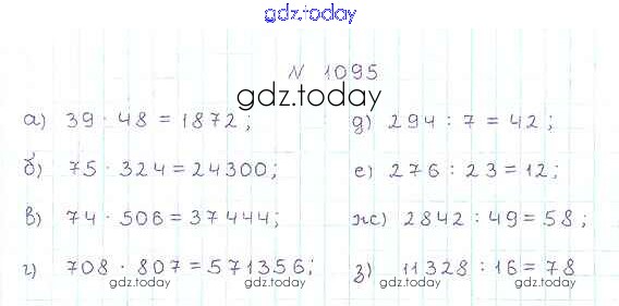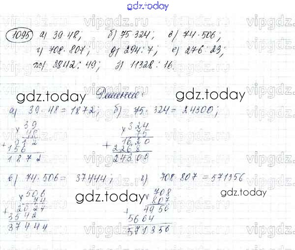 Ответы к Решение к упражнениям 1095 Учебнику по Математике для 5 класса Никольский, Потапов Просвещение, Просвещение МГУ - школе 2016, 2012