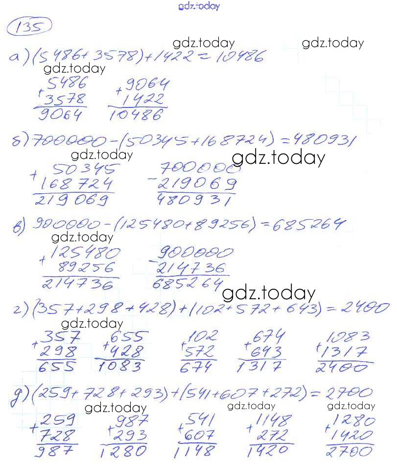 Ответы к Решение к упражнениям 135 Учебнику по Математике для 5 класса Никольский, Потапов Просвещение, Просвещение МГУ - школе 2016, 2012