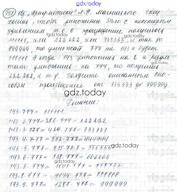 На страницах сайта gdz.today вы найдете учебный и вспомогательный материал, направленный на улучшения знаний школьной программы. ГДЗ - онлайн мир знаний Решение к упражнениям 151 Учебнику по Математике для 5 класса Никольский, Потапов Просвещение, Просвещение МГУ - школе 2016, 2012