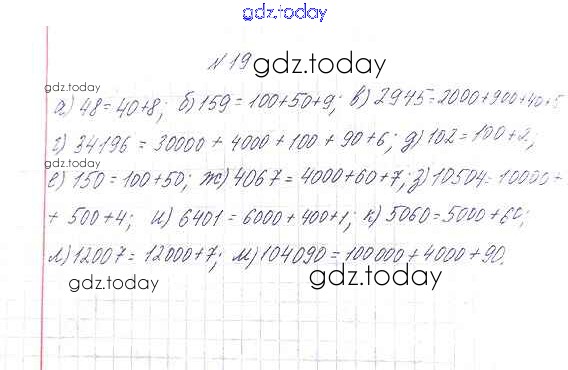Ответы к Решение к упражнениям 19 Учебнику по Математике для 5 класса Никольский, Потапов Просвещение, Просвещение МГУ - школе 2016, 2012