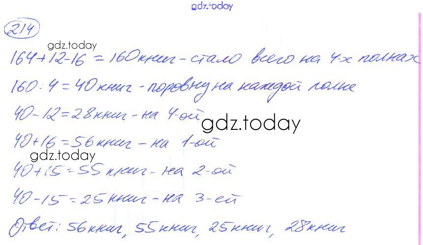 Ответы к Решение к упражнениям 214 Учебнику по Математике для 5 класса Никольский, Потапов Просвещение, Просвещение МГУ - школе 2016, 2012