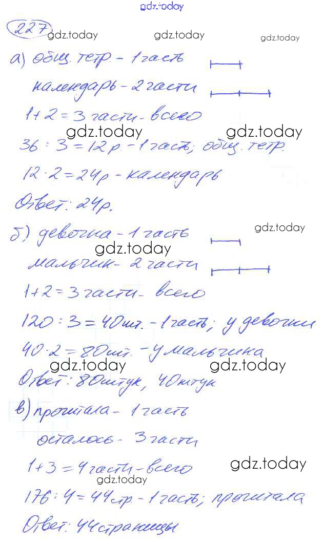Ответы к Решение к упражнениям 227 Учебнику по Математике для 5 класса Никольский, Потапов Просвещение, Просвещение МГУ - школе 2016, 2012
