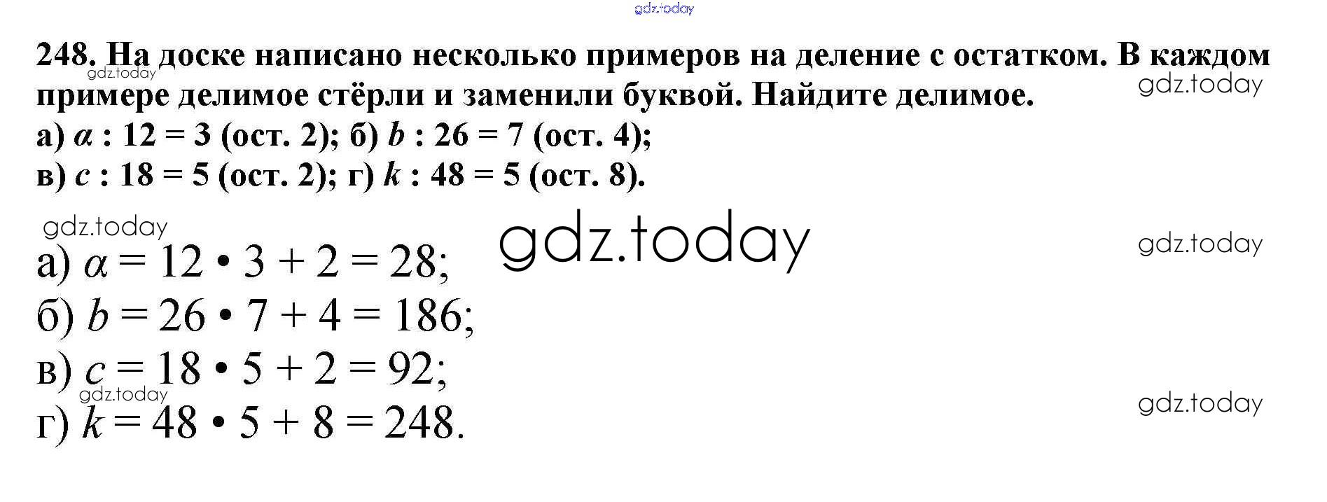 На страницах сайта gdz.today вы найдете учебный и вспомогательный материал, направленный на улучшения знаний школьной программы. ГДЗ - онлайн мир знаний Решение к упражнениям 248 Учебнику по Математике для 5 класса Никольский, Потапов Просвещение, Просвещение МГУ - школе 2016, 2012