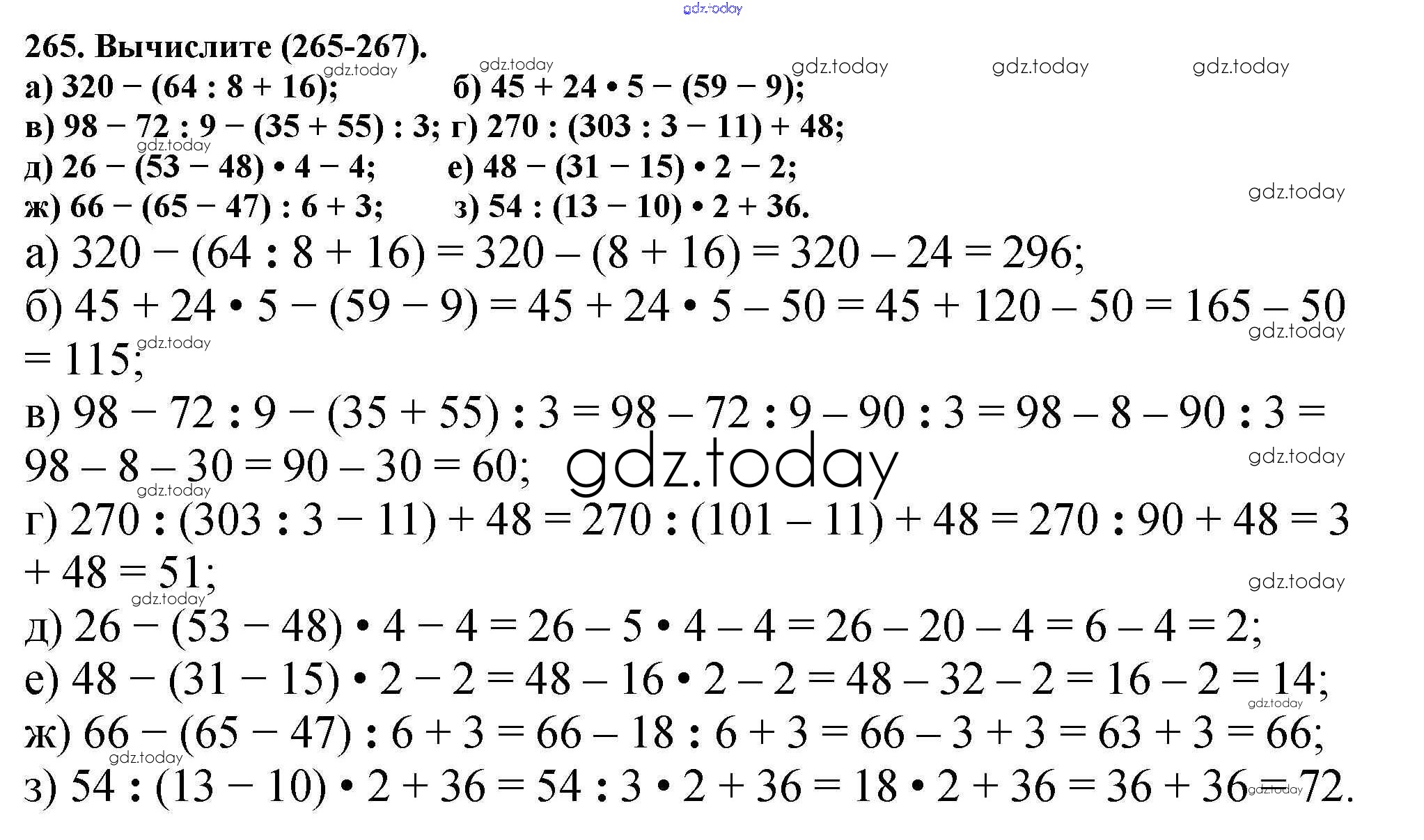 На страницах сайта gdz.today вы найдете учебный и вспомогательный материал, направленный на улучшения знаний школьной программы. ГДЗ - онлайн мир знаний Решение к упражнениям 265 Учебнику по Математике для 5 класса Никольский, Потапов Просвещение, Просвещение МГУ - школе 2016, 2012