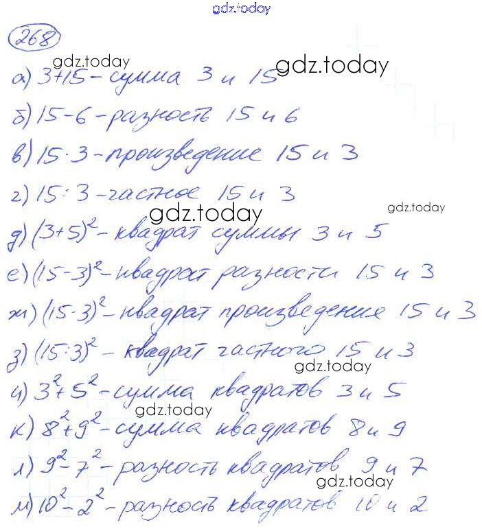 На страницах сайта gdz.today вы найдете учебный и вспомогательный материал, направленный на улучшения знаний школьной программы. ГДЗ - онлайн мир знаний Решение к упражнениям 268 Учебнику по Математике для 5 класса Никольский, Потапов Просвещение, Просвещение МГУ - школе 2016, 2012