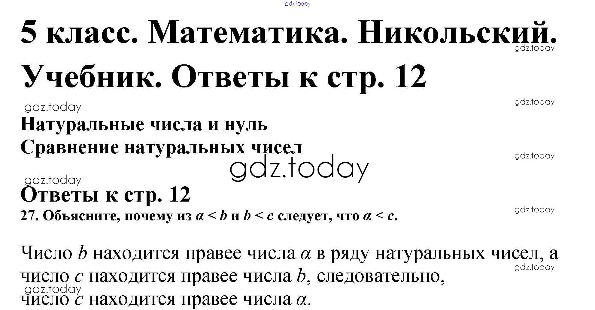Ответы к Решение к упражнениям 27 Учебнику по Математике для 5 класса Никольский, Потапов Просвещение, Просвещение МГУ - школе 2016, 2012