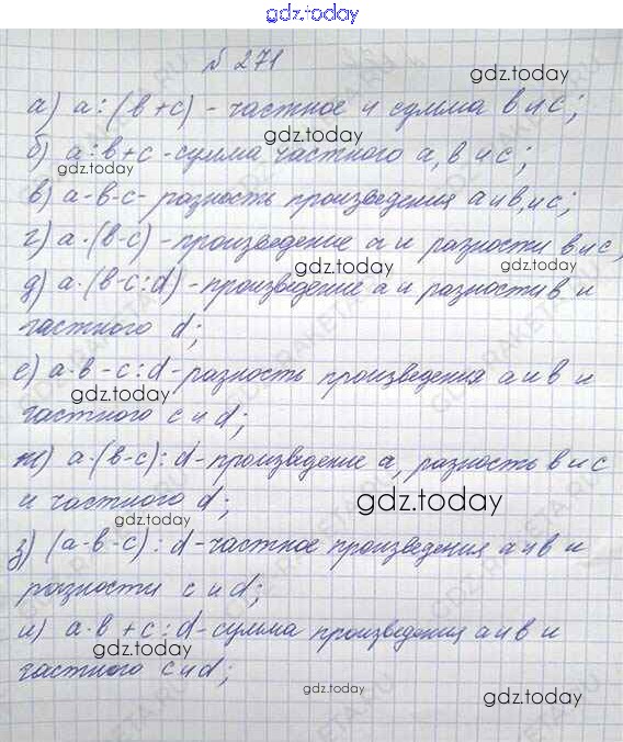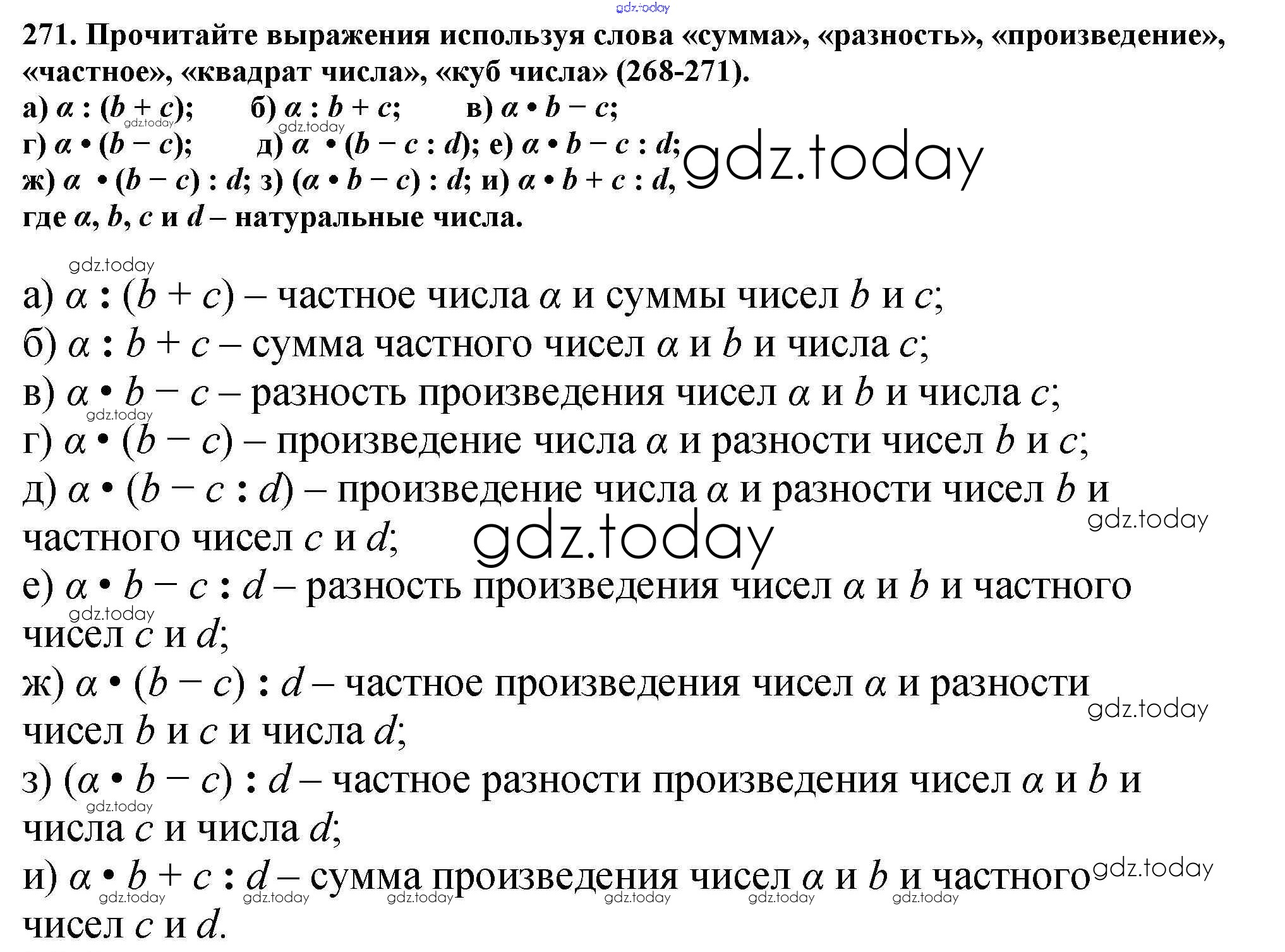 На страницах сайта gdz.today вы найдете учебный и вспомогательный материал, направленный на улучшения знаний школьной программы. ГДЗ - онлайн мир знаний Решение к упражнениям 271 Учебнику по Математике для 5 класса Никольский, Потапов Просвещение, Просвещение МГУ - школе 2016, 2012