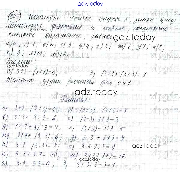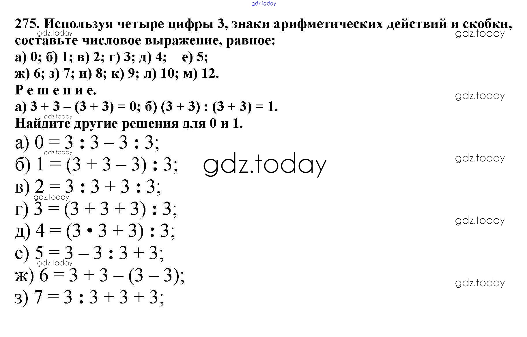 На страницах сайта gdz.today вы найдете учебный и вспомогательный материал, направленный на улучшения знаний школьной программы. ГДЗ - онлайн мир знаний Решение к упражнениям 275 Учебнику по Математике для 5 класса Никольский, Потапов Просвещение, Просвещение МГУ - школе 2016, 2012