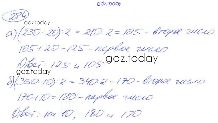 Ответы к Решение к упражнениям 284 Учебнику по Математике для 5 класса Никольский, Потапов Просвещение, Просвещение МГУ - школе 2016, 2012