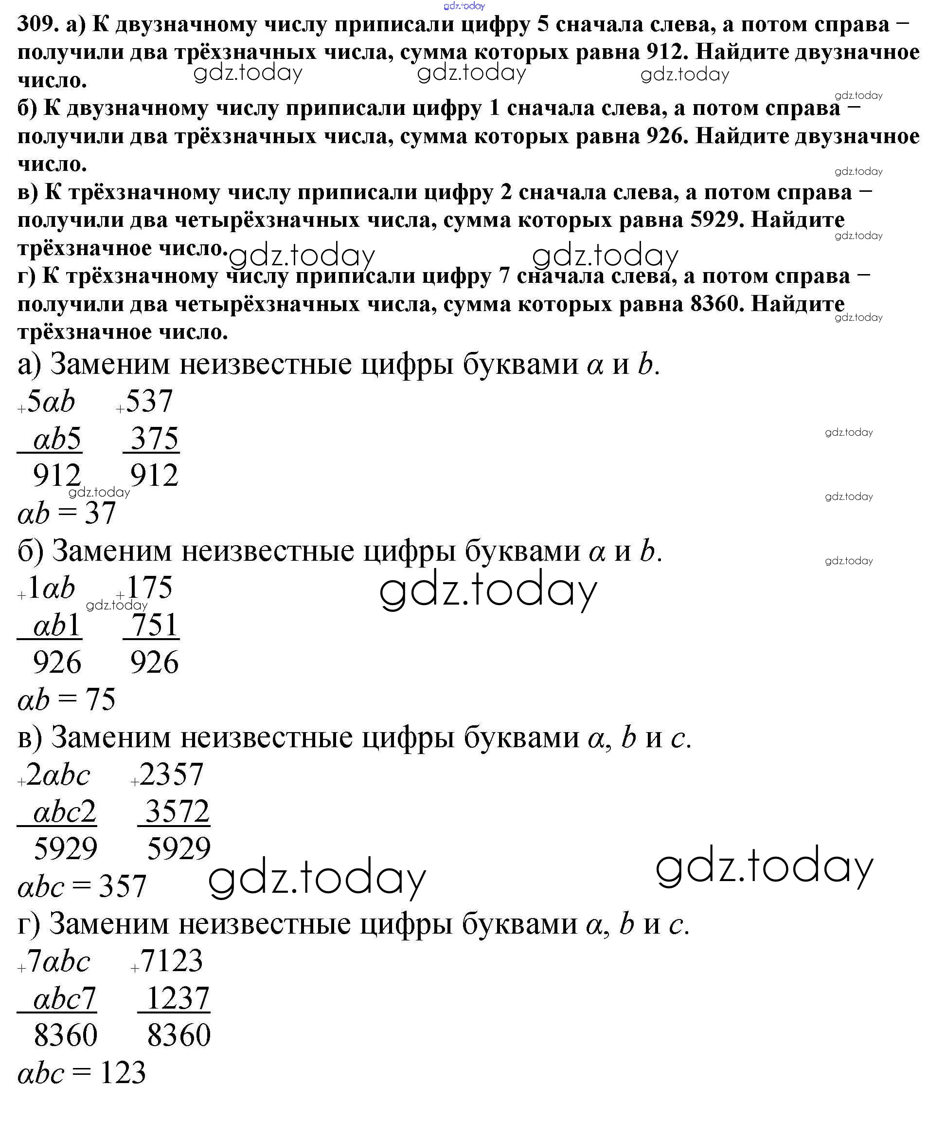 Ответы к Решение к упражнениям 309 Учебнику по Математике для 5 класса Никольский, Потапов Просвещение, Просвещение МГУ - школе 2016, 2012