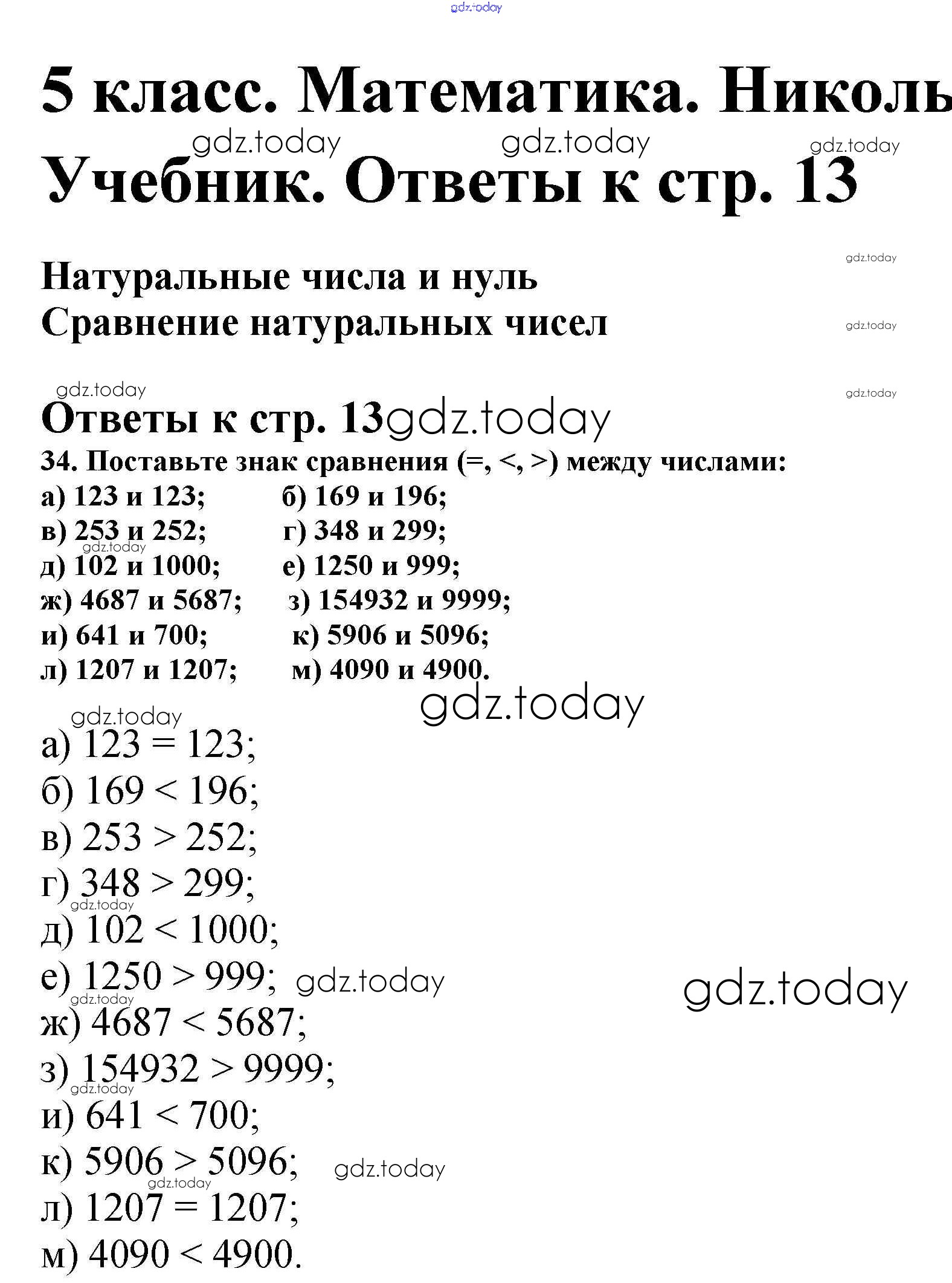 Ответы к Решение к упражнениям 34 Учебнику по Математике для 5 класса Никольский, Потапов Просвещение, Просвещение МГУ - школе 2016, 2012