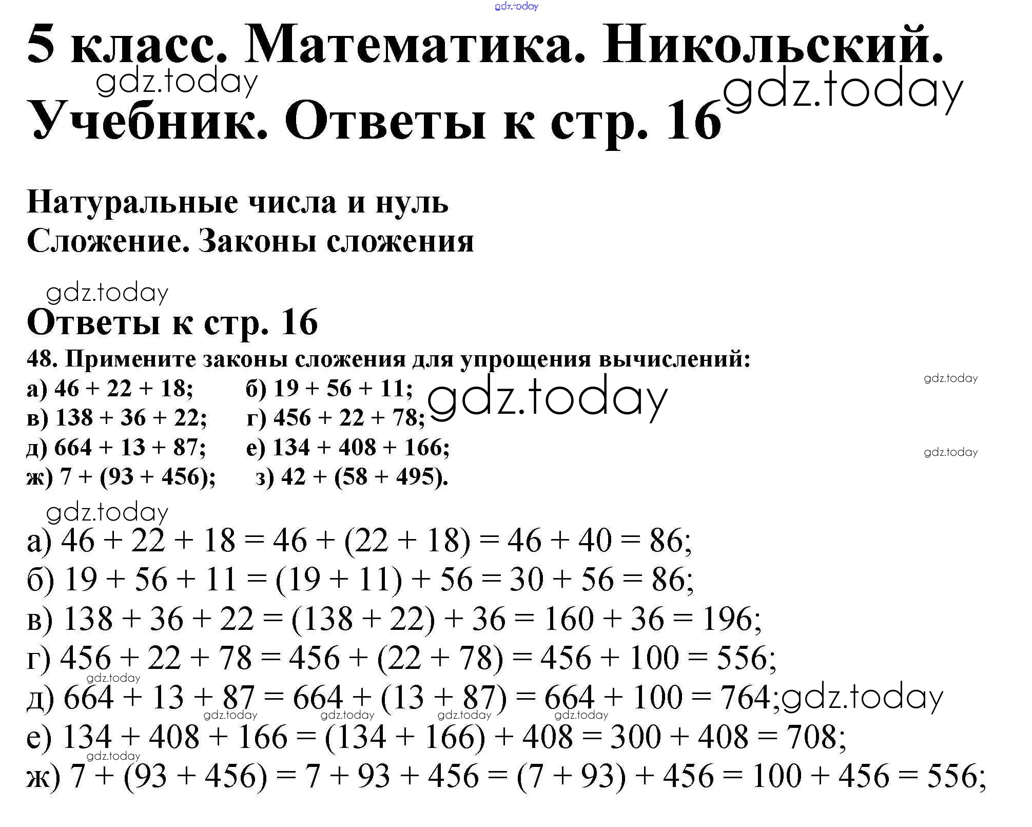 На страницах сайта gdz.today вы найдете учебный и вспомогательный материал, направленный на улучшения знаний школьной программы. ГДЗ - онлайн мир знаний Решение к упражнениям 48 Учебнику по Математике для 5 класса Никольский, Потапов Просвещение, Просвещение МГУ - школе 2016, 2012