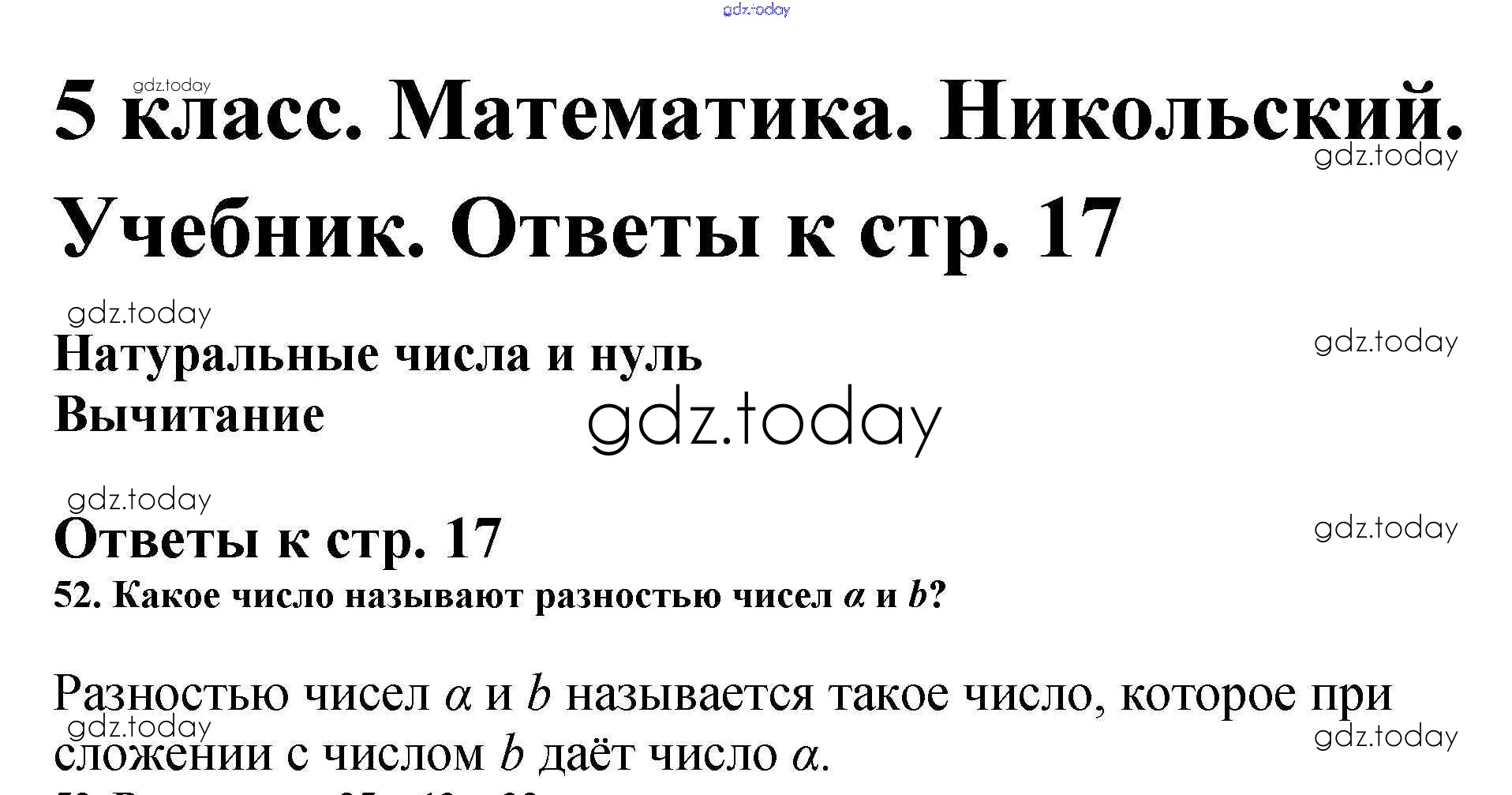 На страницах сайта gdz.today вы найдете учебный и вспомогательный материал, направленный на улучшения знаний школьной программы. ГДЗ - онлайн мир знаний Решение к упражнениям 52 Учебнику по Математике для 5 класса Никольский, Потапов Просвещение, Просвещение МГУ - школе 2016, 2012