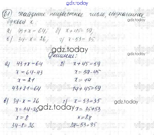 Ответы к Решение к упражнениям 61 Учебнику по Математике для 5 класса Никольский, Потапов Просвещение, Просвещение МГУ - школе 2016, 2012