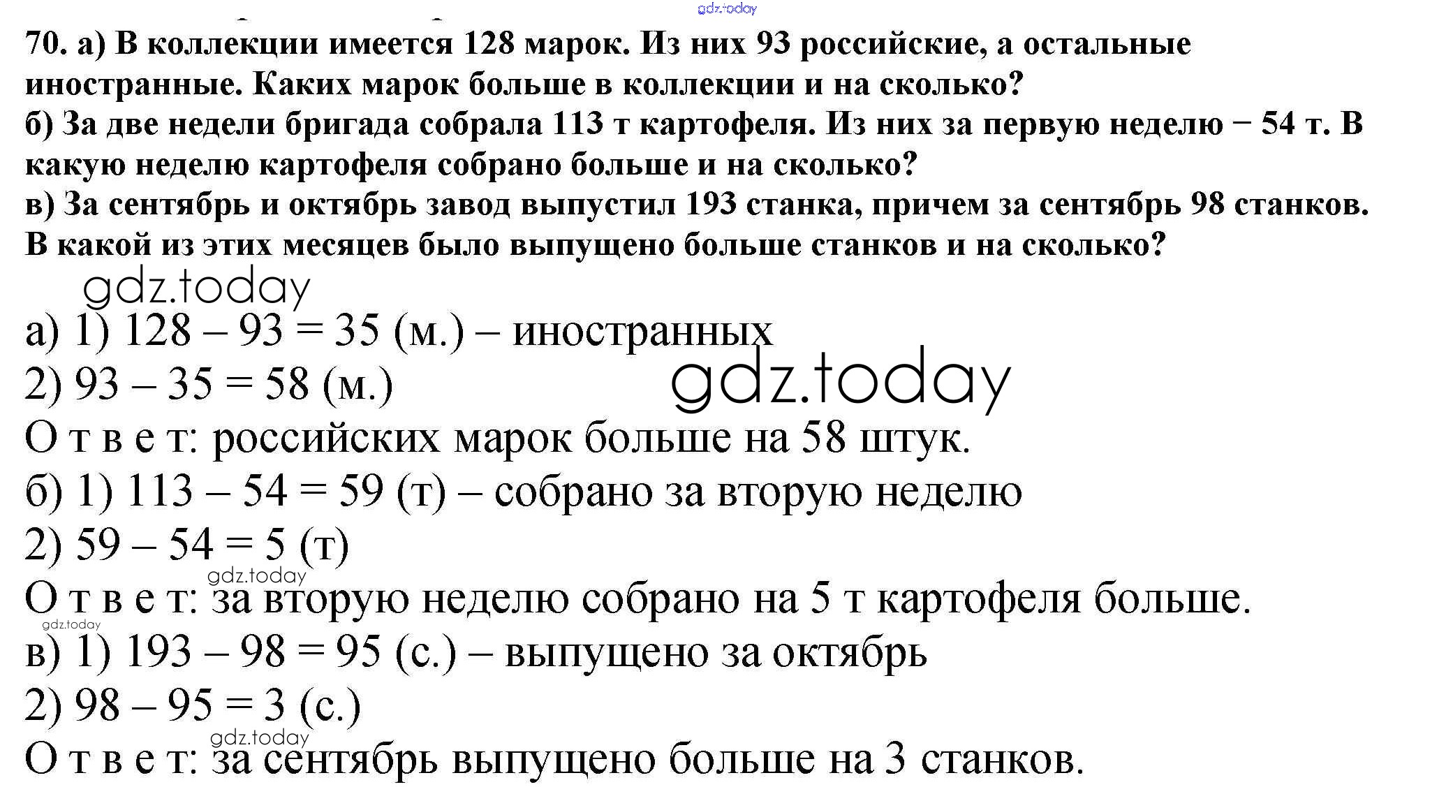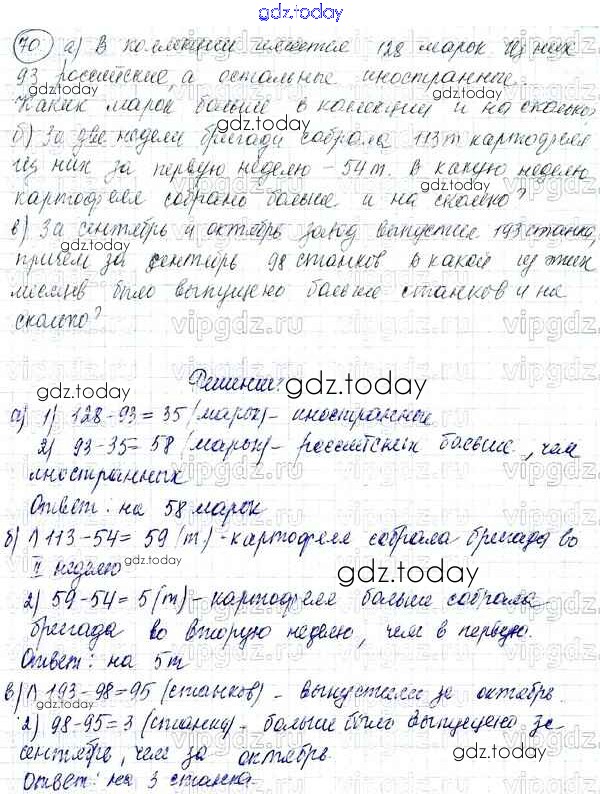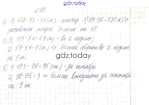 Ответы к Решение к упражнениям 70 Учебнику по Математике для 5 класса Никольский, Потапов Просвещение, Просвещение МГУ - школе 2016, 2012