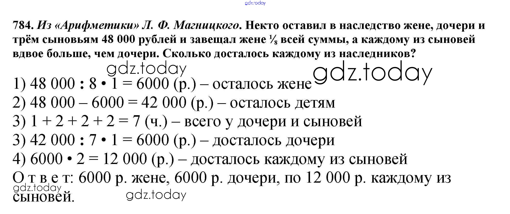 Ответы к Решение к упражнениям 784 Учебнику по Математике для 5 класса Никольский, Потапов Просвещение, Просвещение МГУ - школе 2016, 2012