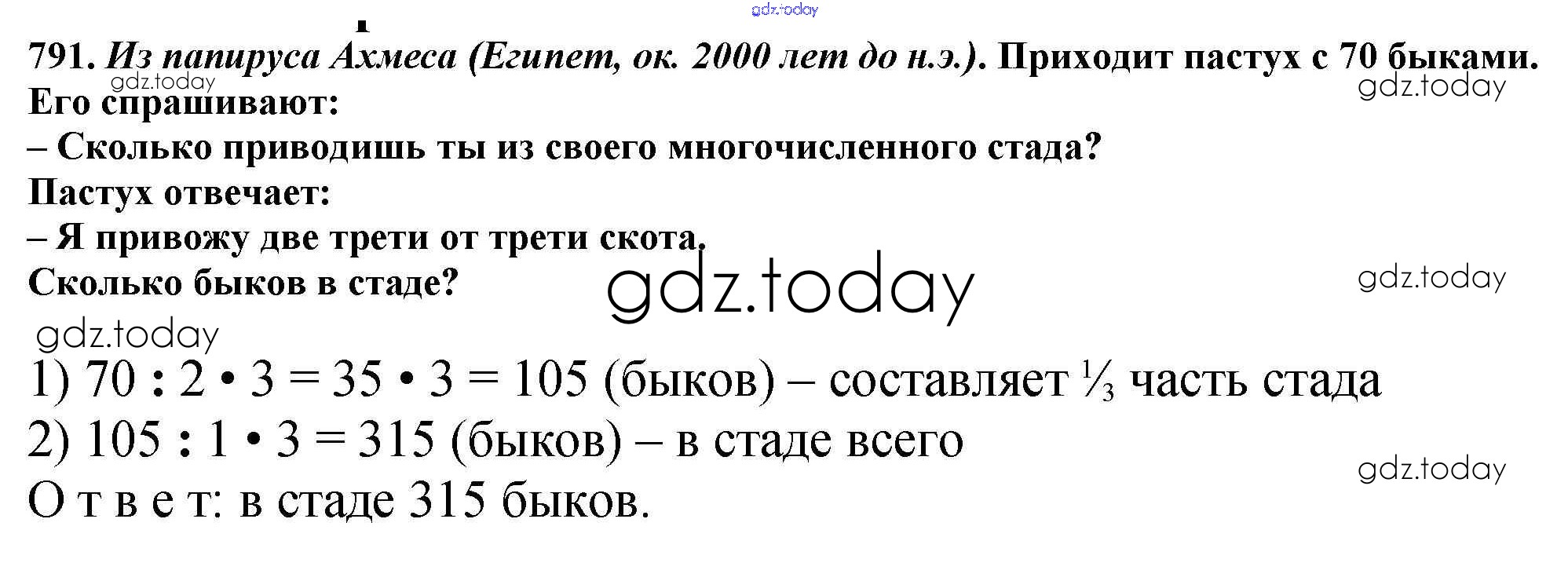 Ответы к Решение к упражнениям 791 Учебнику по Математике для 5 класса Никольский, Потапов Просвещение, Просвещение МГУ - школе 2016, 2012