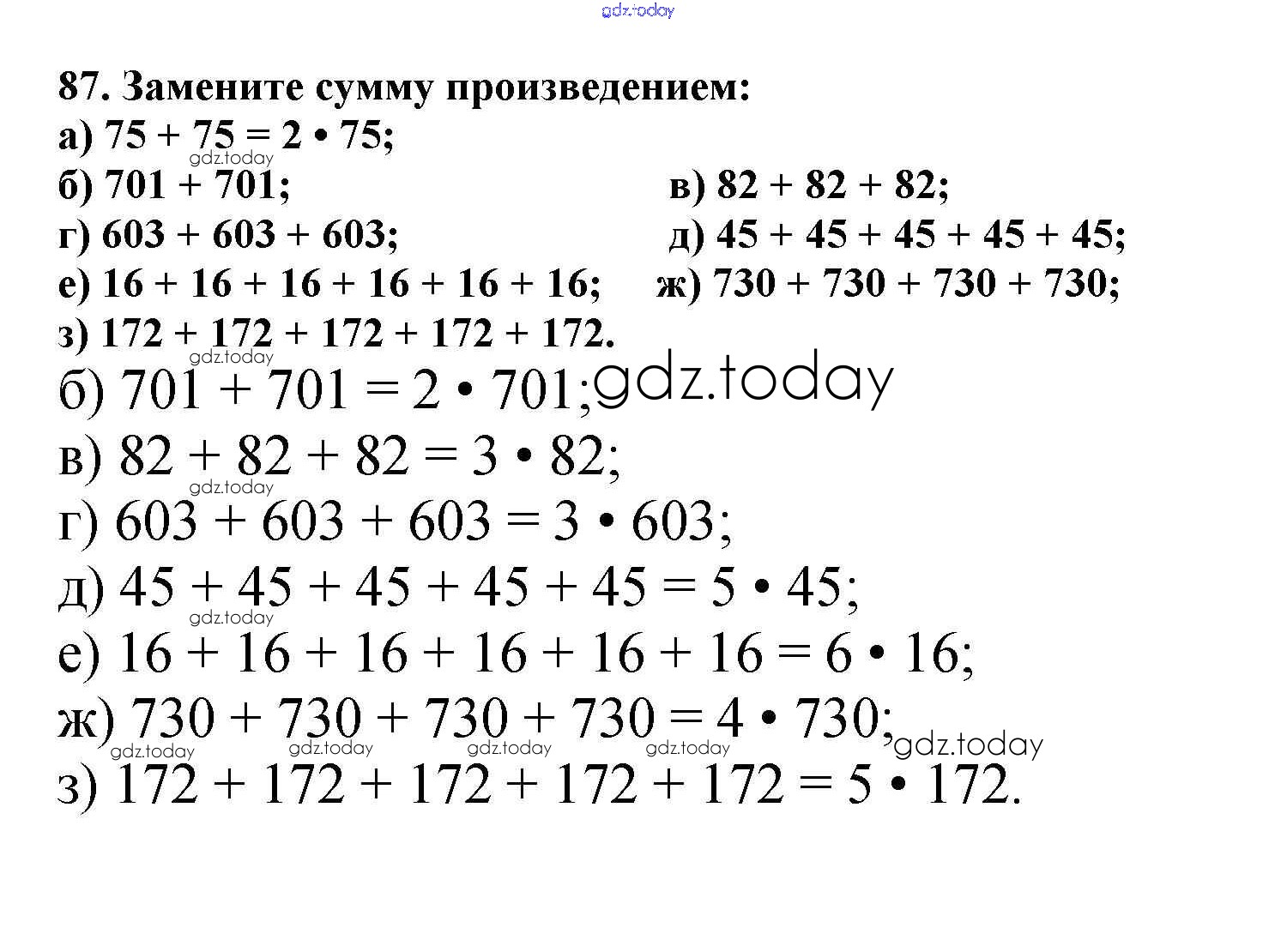 Ответы к Решение к упражнениям 87 Учебнику по Математике для 5 класса Никольский, Потапов Просвещение, Просвещение МГУ - школе 2016, 2012